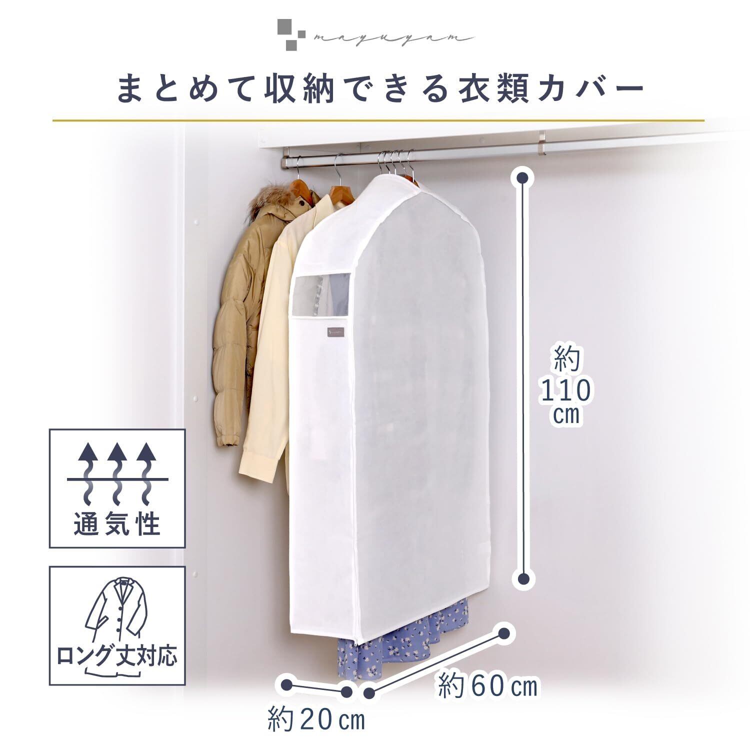 アストロ mayuyam マチ付き衣類カバー ホワイト 【通気性の良い不織布 洋服カバー】 幅広 下部開き まとめて収納 ロング丈対応 約4~6枚収納 インスタグラマーMAYUさんとのコラボ開発商品 クローゼット ハンガーラック 埃除け 衣替え シンプルで使いやすい 透明窓付き 折りたためる mayuyamシリーズ 組み合わせ自在 860-07