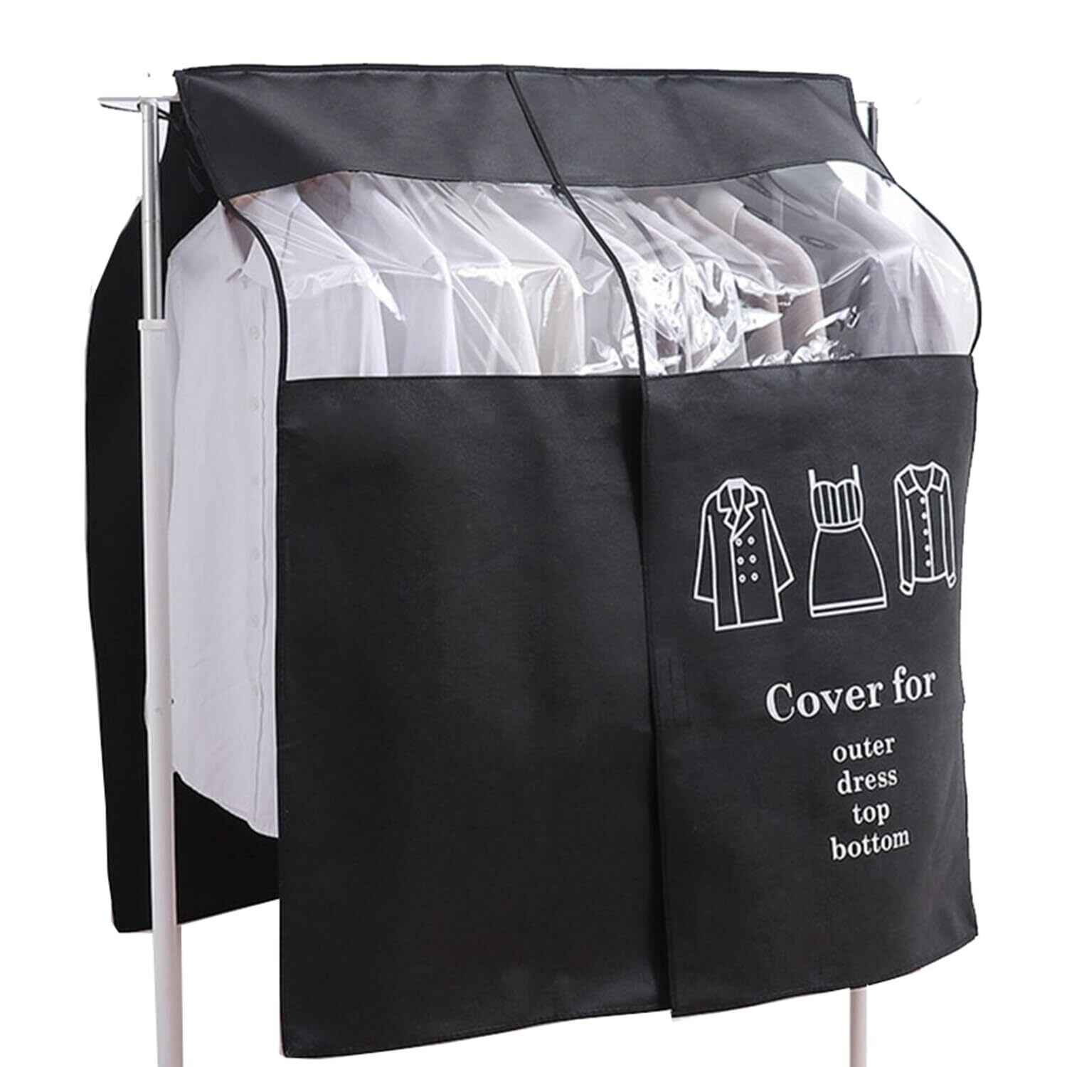 衣類カバー ハンガーラックカバー クローゼット 収納 整理 ハンガーラック ラック用 ほこりよけ ほこり防止 衣類整理 衣替え シーズンオフ 90cm×110cm ブラック