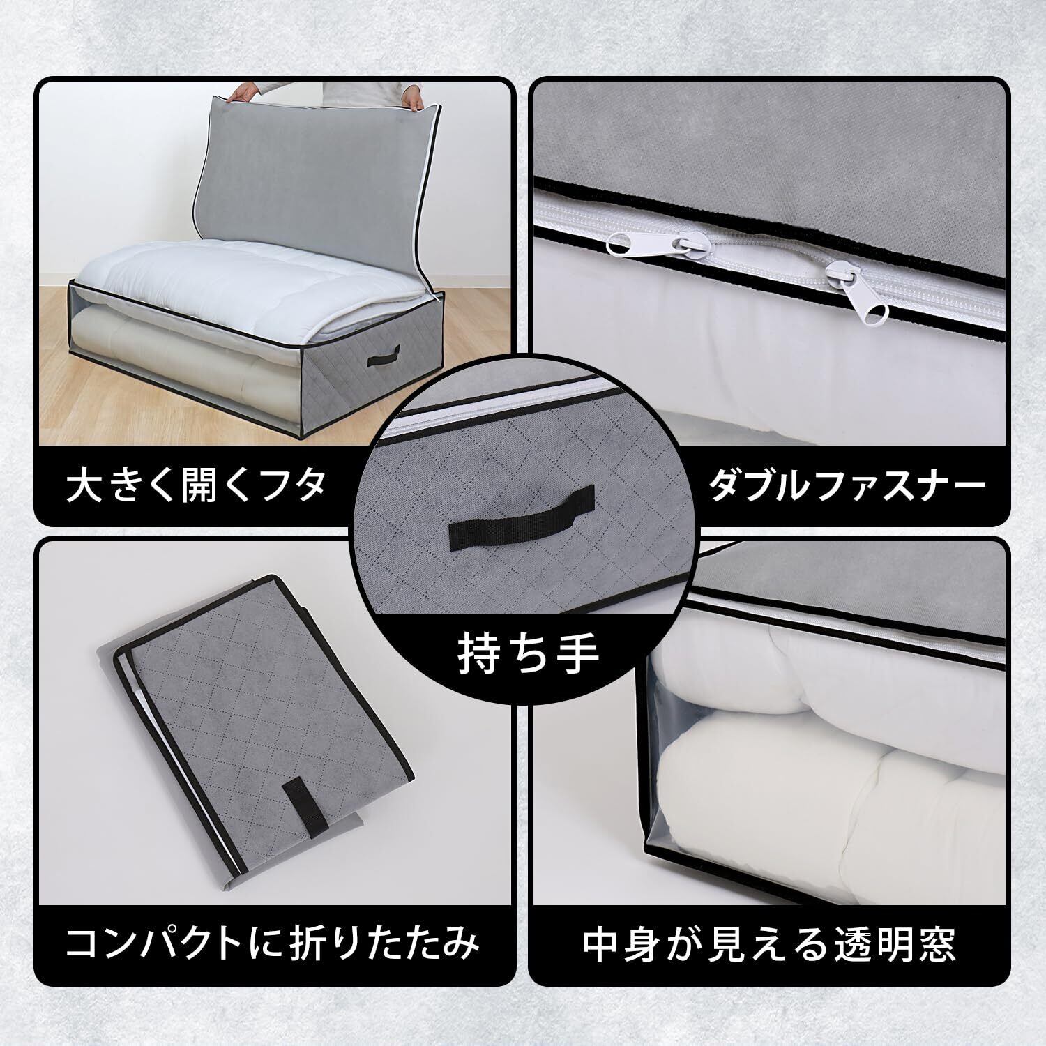 アストロ 消臭 敷布団収納ケース 活性炭と珪藻土のWパワー 消臭保管 通気性の良い不織布がホコリなどの汚れをガード 出し入れや持ち運びがしやすい持ち手付き 3層構造の厚手でしっかりとした生地 透明窓付き 布団収納 布団袋 収納ケース 引っ越し グレー 615-26