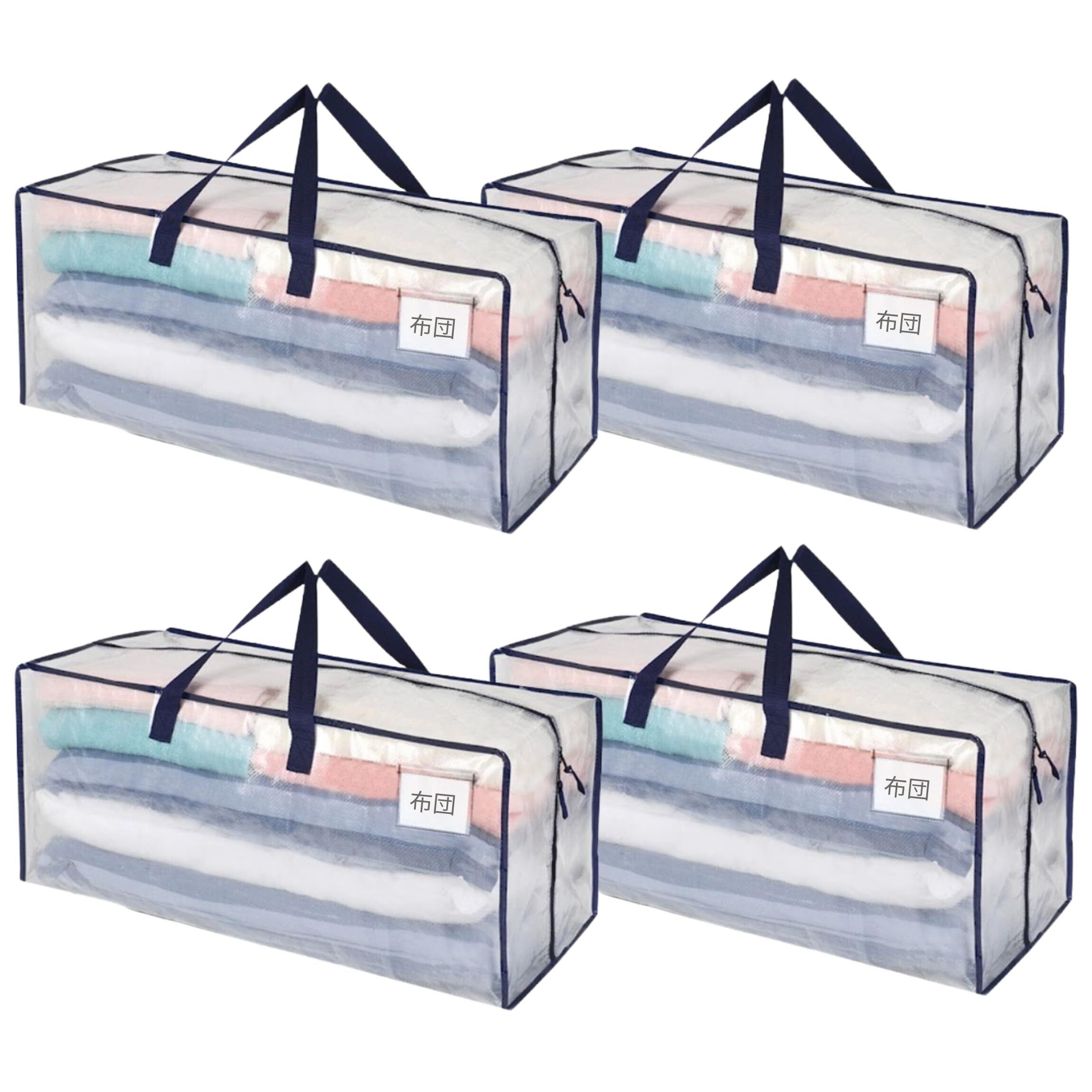 VENO 布団収納袋 リュック型 背負える 引越し用ダンボールの代替 88L大容量 布団袋 耐久 耐水 折りたたみ 衣装ケース 収納ケース 引越しバッグ 布団収納 衣類収納 押入れ収納 キャンプ 旅行 (半透明 4枚セット)