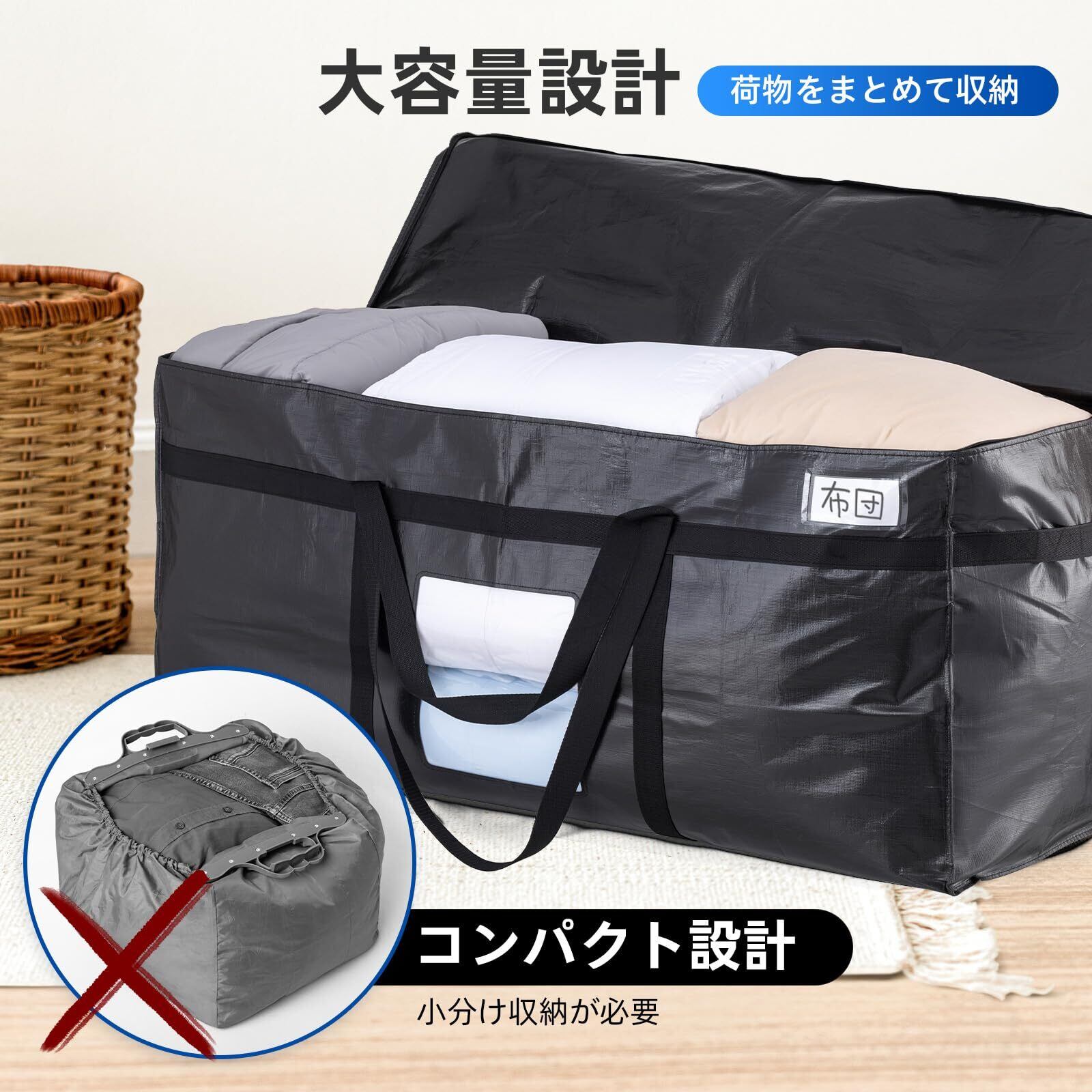 TAILI 大きいバッグ 収納ケース 特大引越し 1個パック 持ち手付き 大容量 防塵防水 折りたたみ式 キャンプ 旅行 収納用 耐荷重 ブラック