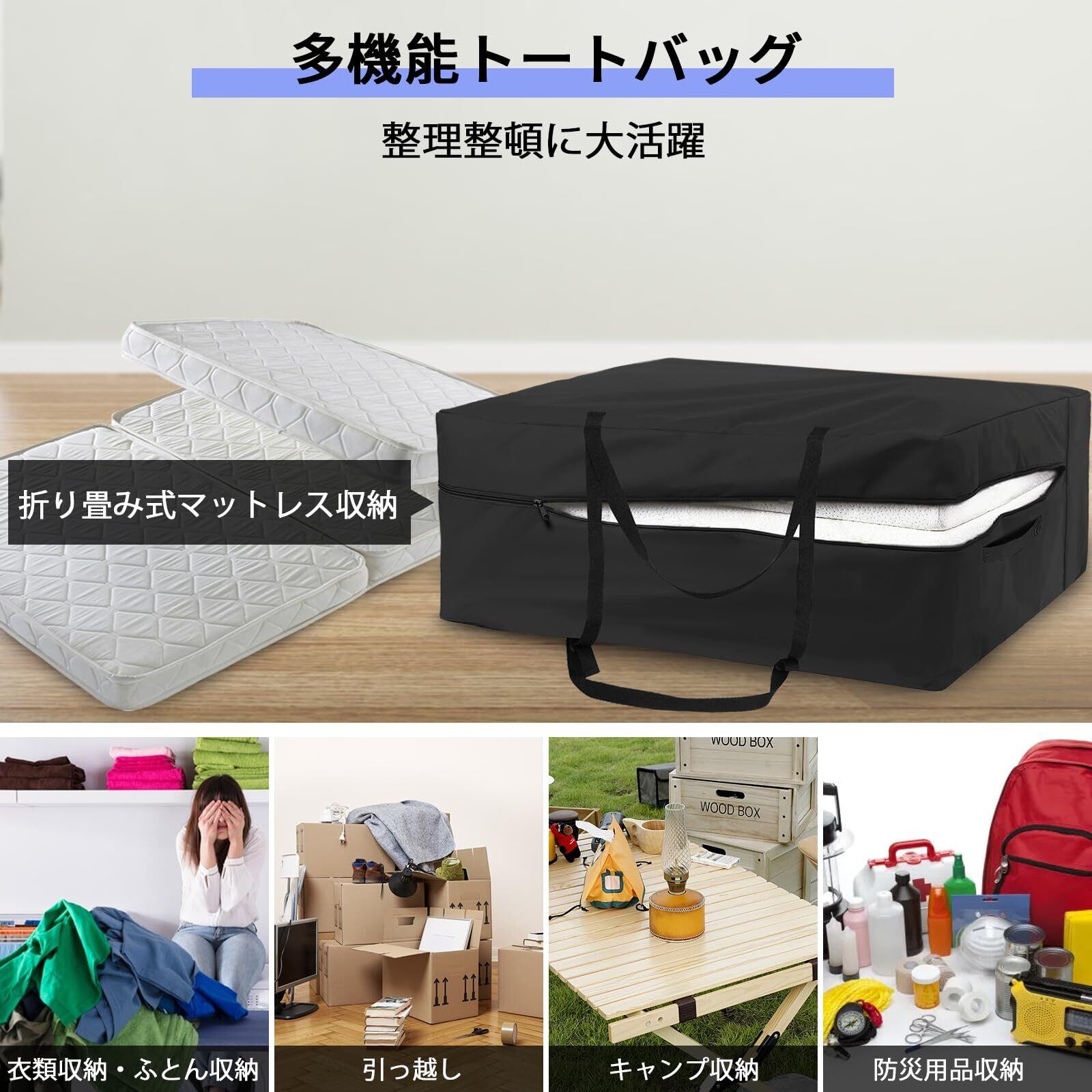 Fenghome 布団収納袋 特大 (299L) 折り畳みマットレス収納バッグ 通気性よい ふとん収納袋 大容量 手持ち付き トートバッグ 大きめ 厚手 敷布団 収納 ぬいぐるみ 収納 ボストンバッグ 大型 防水性・防塵性 420Dオクスフォード布製 頑丈でしっかりしている 収納袋付き