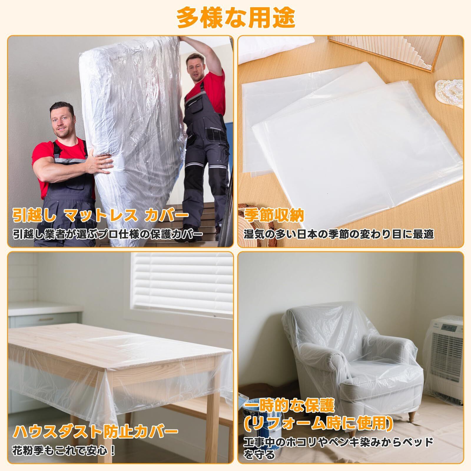 【防塵&引っ越しに最適】: この包装袋は、ホコリから大切なアイテムを守り、新しい家への引っ越し時に、マットレスをしっかり守るための理想的な選択肢です