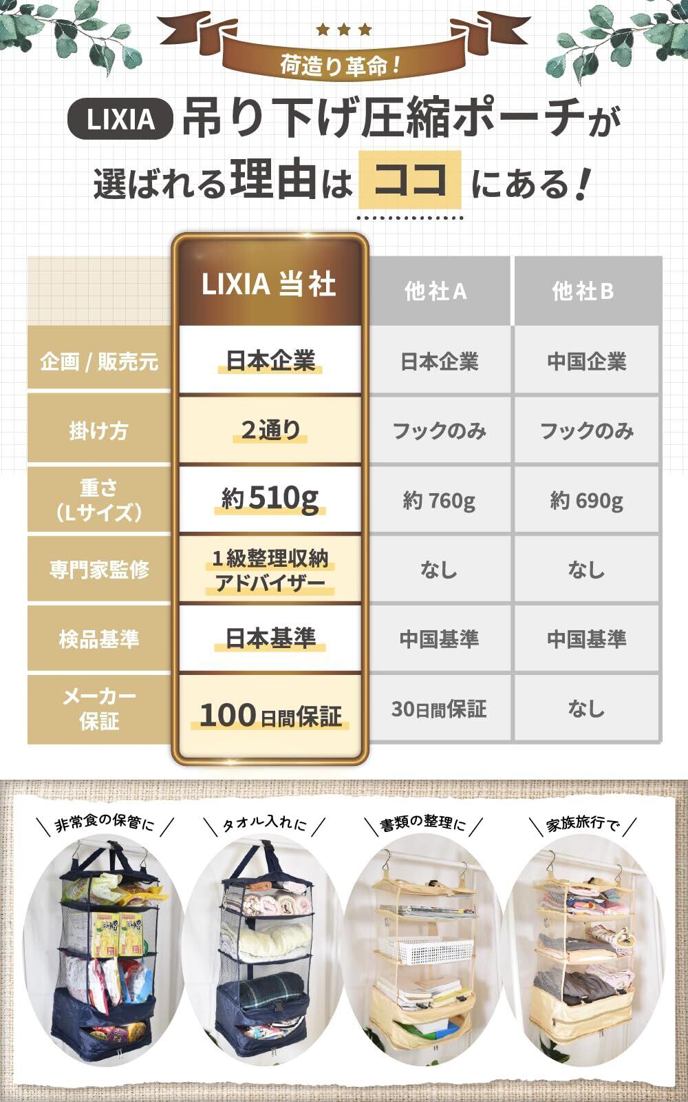 【じゃらん掲載】LIXIA トラベルポーチ 吊り下げ 旅行 便利グッズ 圧縮 バッグ