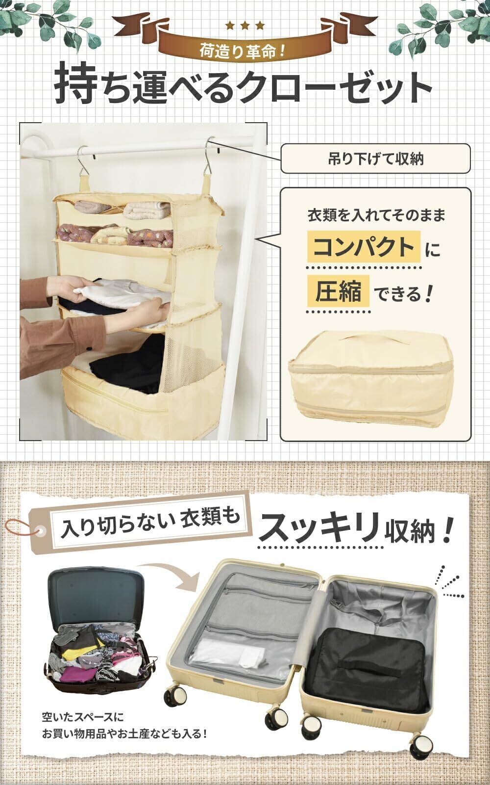 LIXIAから吊り下げ型トラベルポーチが新発売 掛け方2通り、圧縮方法も2通り! お好みに合わせて様々なカスタマイズが可能な持ち運び式衣類収納バッグです。