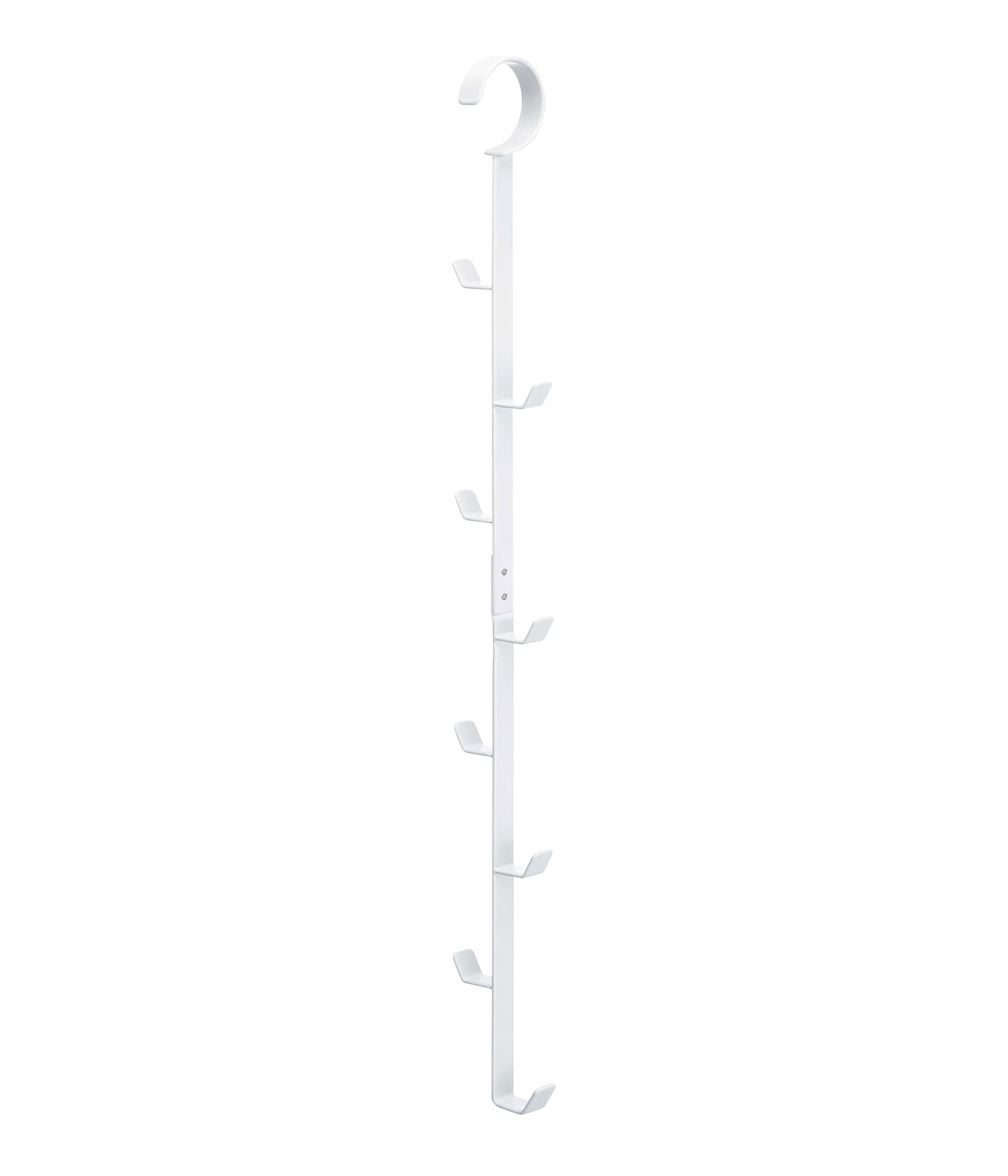散らかりがちなバッグや帽子もクローゼットにまとめて収納。帽子・鞄・小物類をスリムに一括収納!クローゼットのパイプに掛けるだけの簡単設置です。縦に複数かけられるスリムタイプ。クローゼットにも馴染むスマートなデザインです。 ■サイズ:幅6×奥行5×高さ54cm■材質:本体/スチール(粉体塗装)■重量:230g■原産国:Made in China■備考:耐荷重/フック1つにつき約1kg