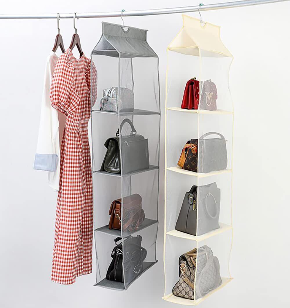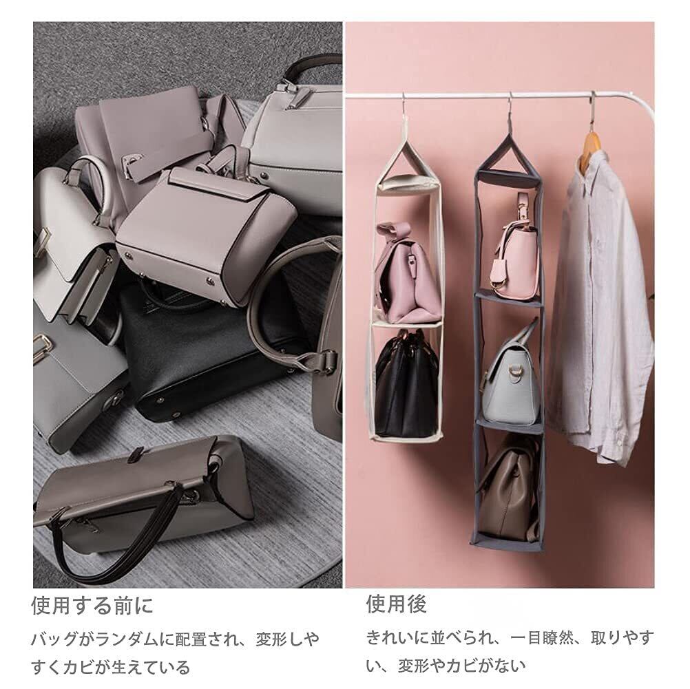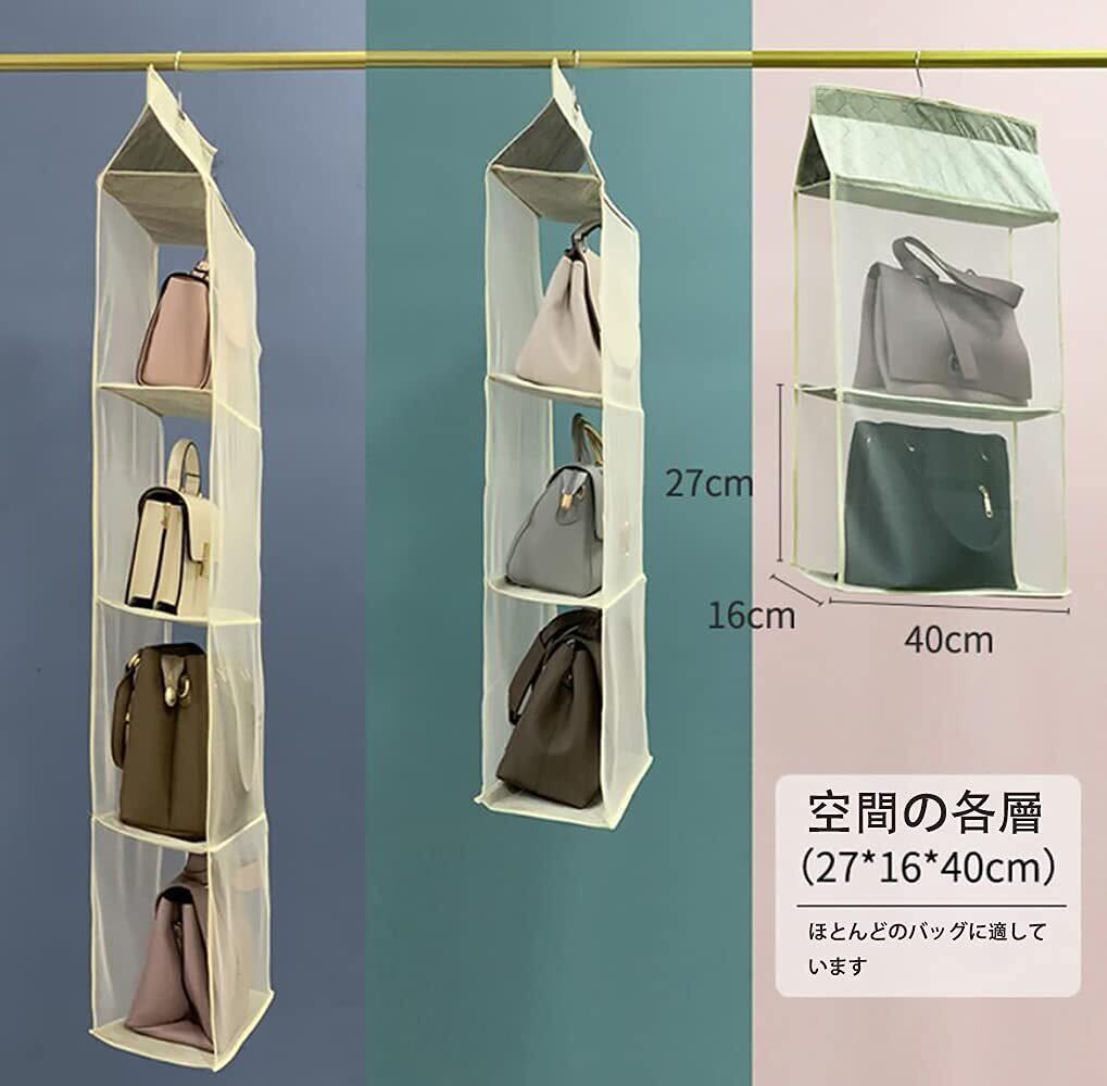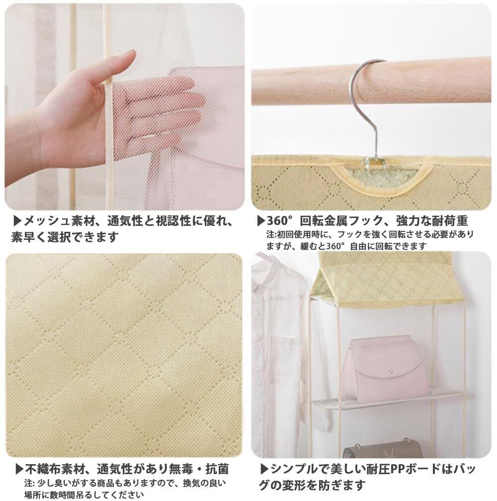 Hongmeru 吊り下げ収納 折りたたみ バッグ収納ラック バッグ ハンガー 省スペース 取り付け簡単 防湿 カバン収納 クローゼット 収納 バッグハンガー 4段式 3段式 2段式(4段, ベージュ)