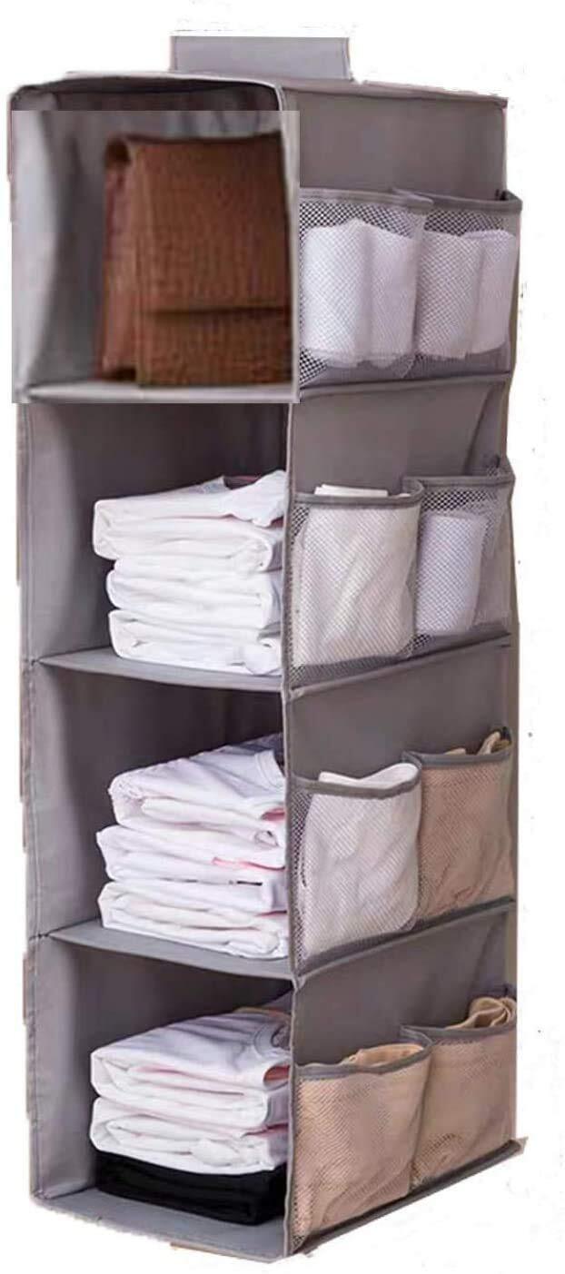 【収納力抜群】見やすく取り出しやすい4段で大容量の吊り下げ収納ラック、収納の心強い味方、両側にブラーや靴下などの12ポケット付き、幅広なので、収納力も抜群です。クローゼットのロッドに掛ける、だけ小物類からジーンズやベルト、帽子、靴箱迄収納られます。お好き次第自由にご愛用頂けます、毎日服を選ぶのが楽しくなります。