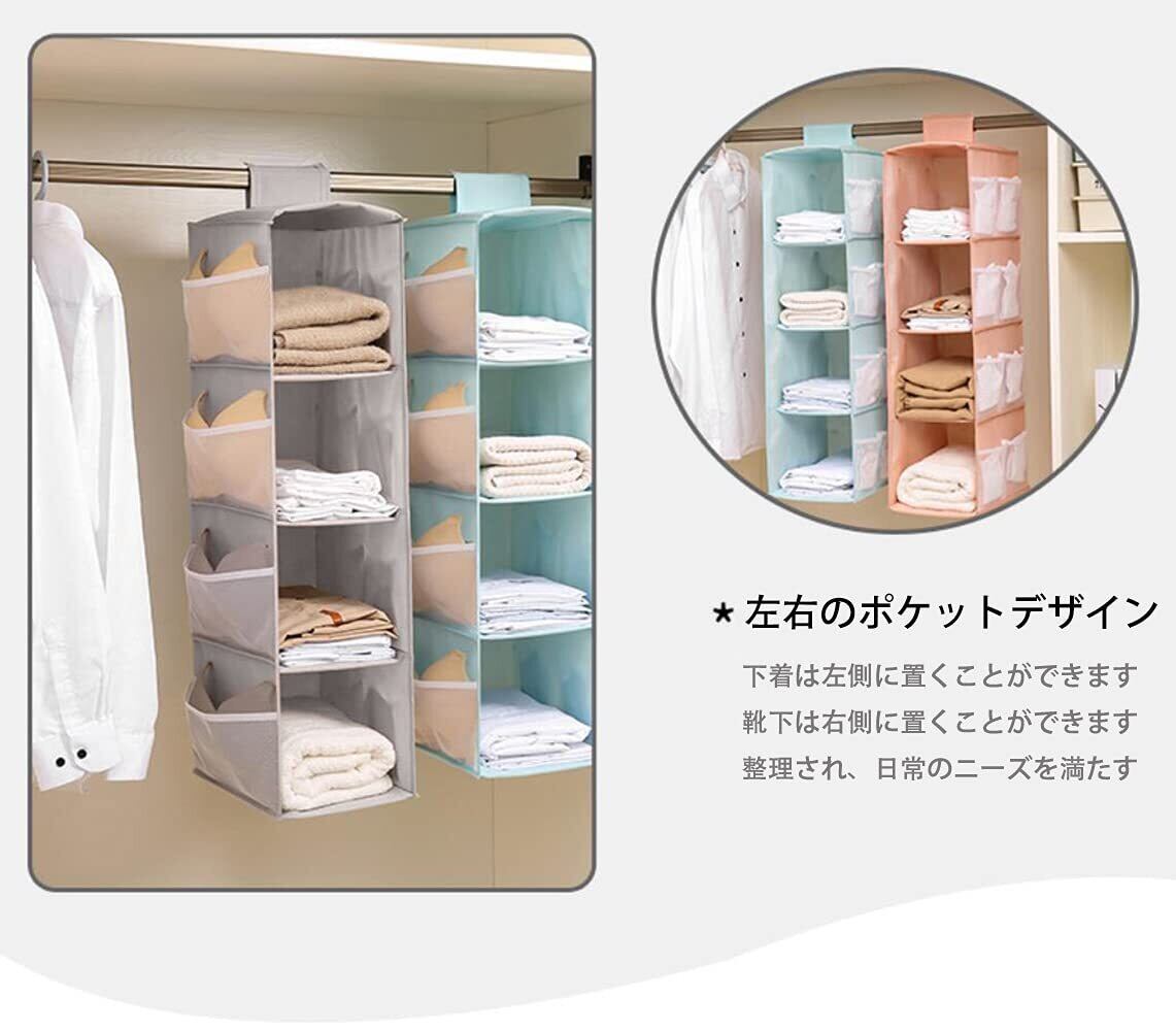 Hongmeru 吊り下げ収納 クローゼット 収納 吊り下げ 水洗い可能 防湿防カビ 取り付け簡単 つりさげ 収納 衣類ラック 下着 靴下 帽子 収納 クローゼット つりさげ 収納 収納 バッグハンガー 4段式 3段式(4段式 ライトグレー)