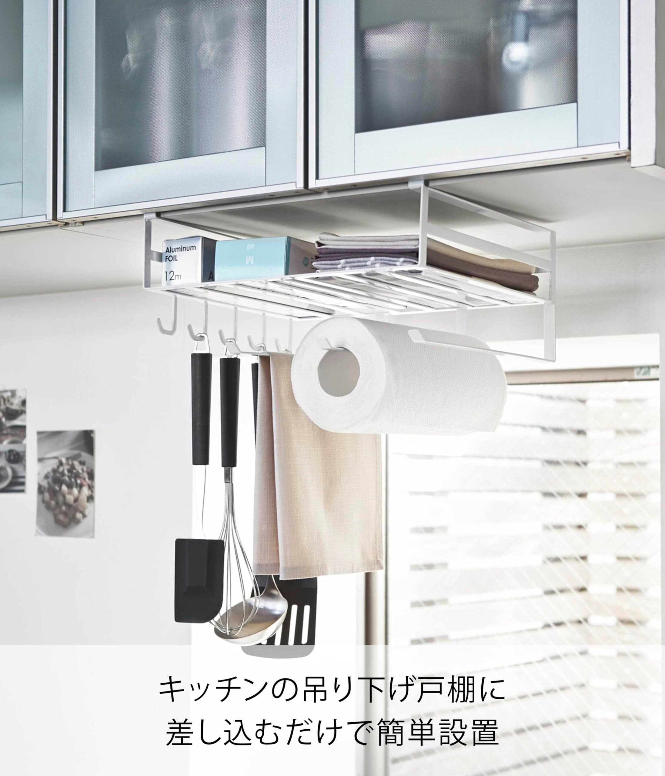 山崎実業(Yamazaki) 戸棚下 多機能ラック ホワイト 約W30.5×D26×H16cm タワー tower キッチンペーパーホルダー キッチンラック 2845