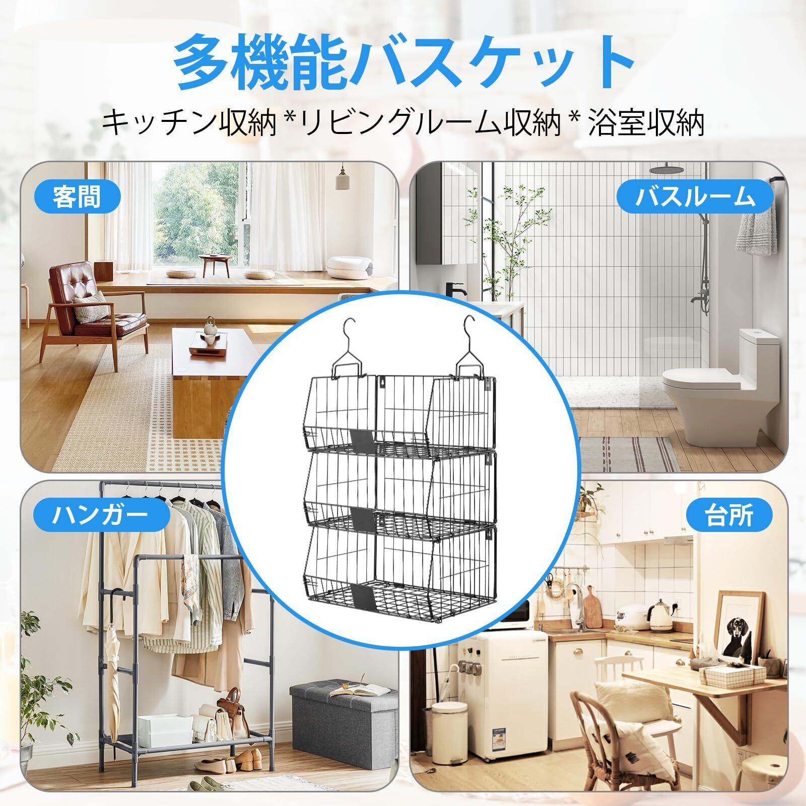 【3way置き方・様々なシーンに適用】吊り下げ式だけでなく、平らな底部設計により、地面に直接置いても安定して使用できます。さらに、ネジを使って取り付けることで、壁面に簡単に掛けることも可能です。クローゼットの衣類収納に適しているだけでなく、本棚、台所の雑物整理、バスルームのタオル収納、リビングルームの雑誌整理など、様々なシーンで活躍します。多機能で汎用性の高い整理ラックで、あなたの生活をサポートします。