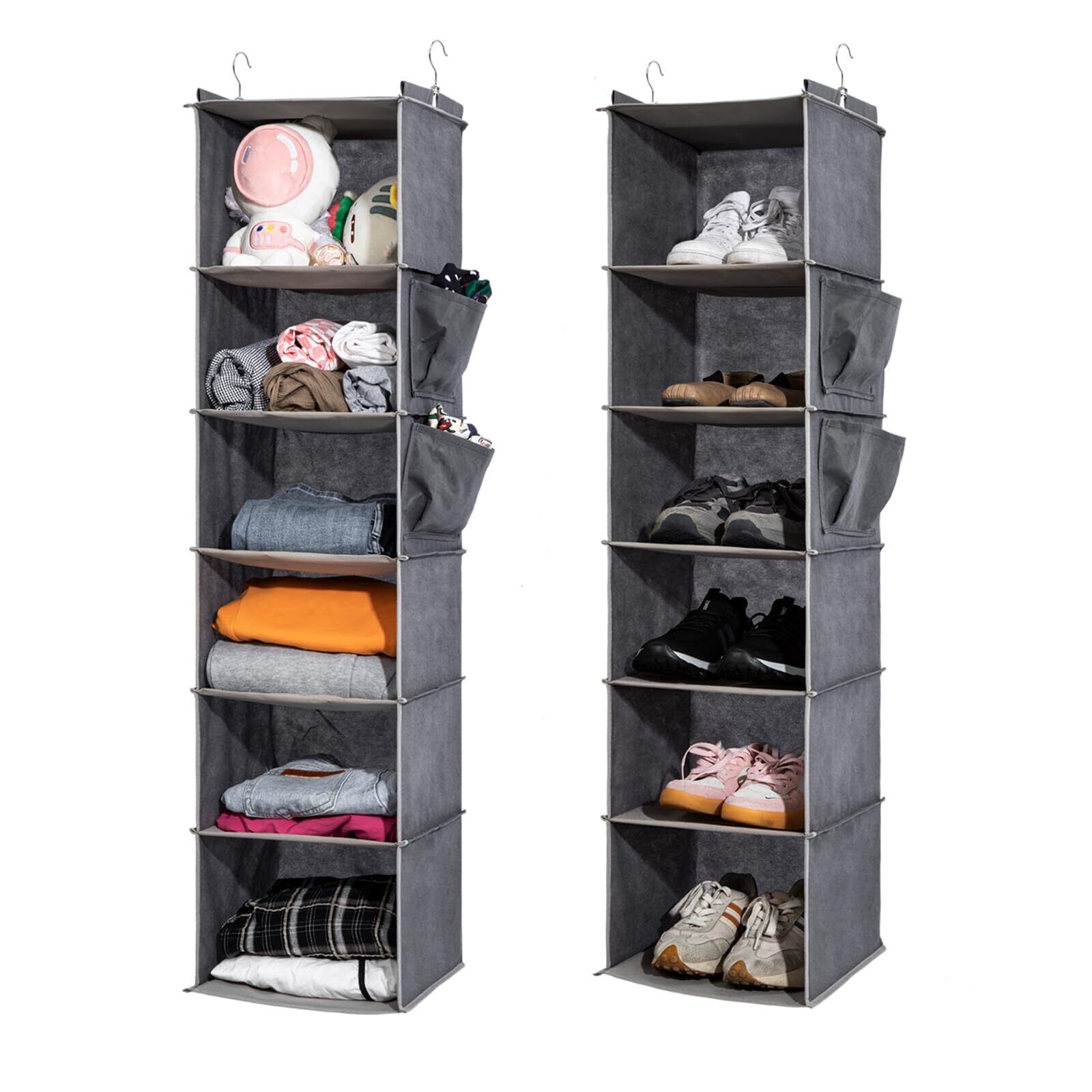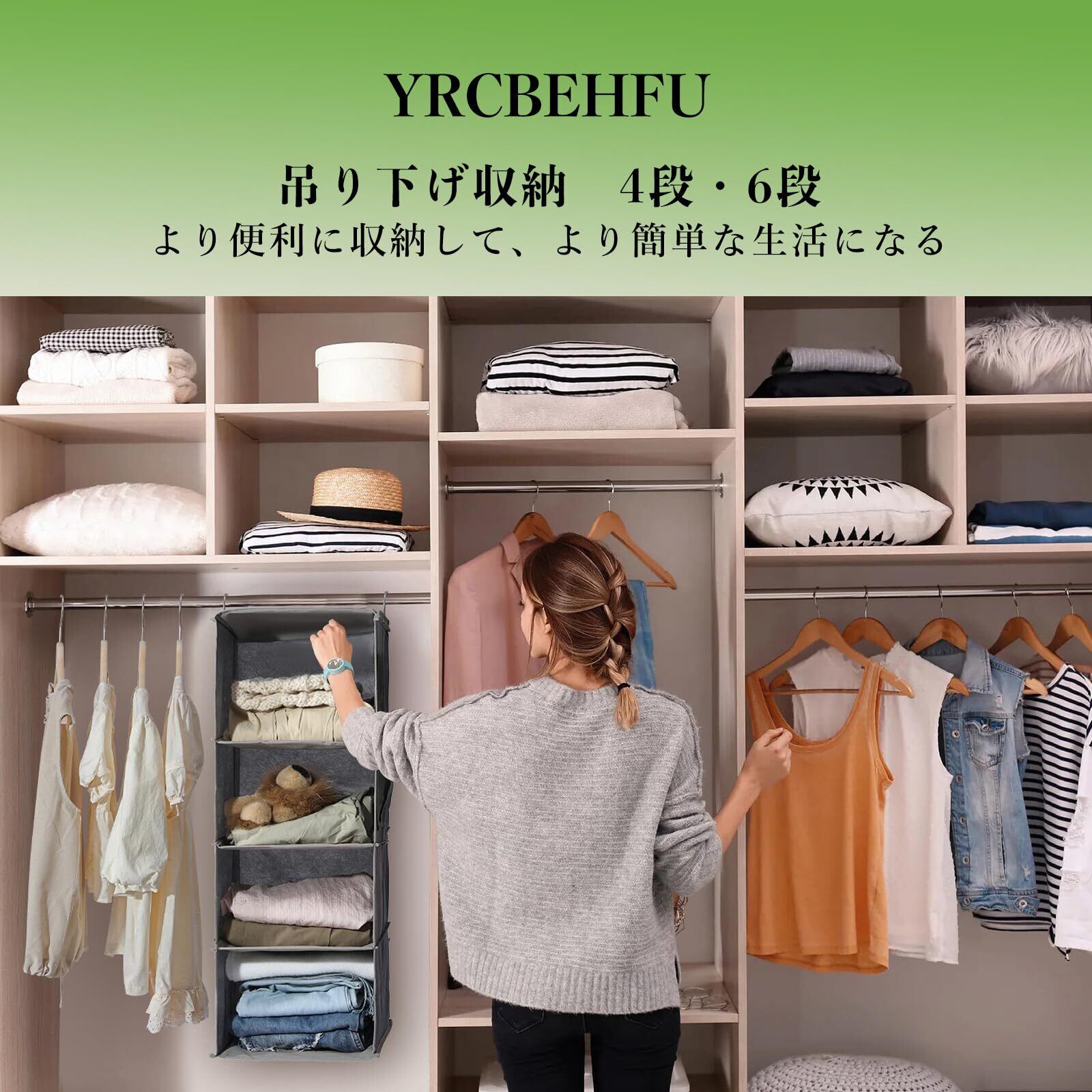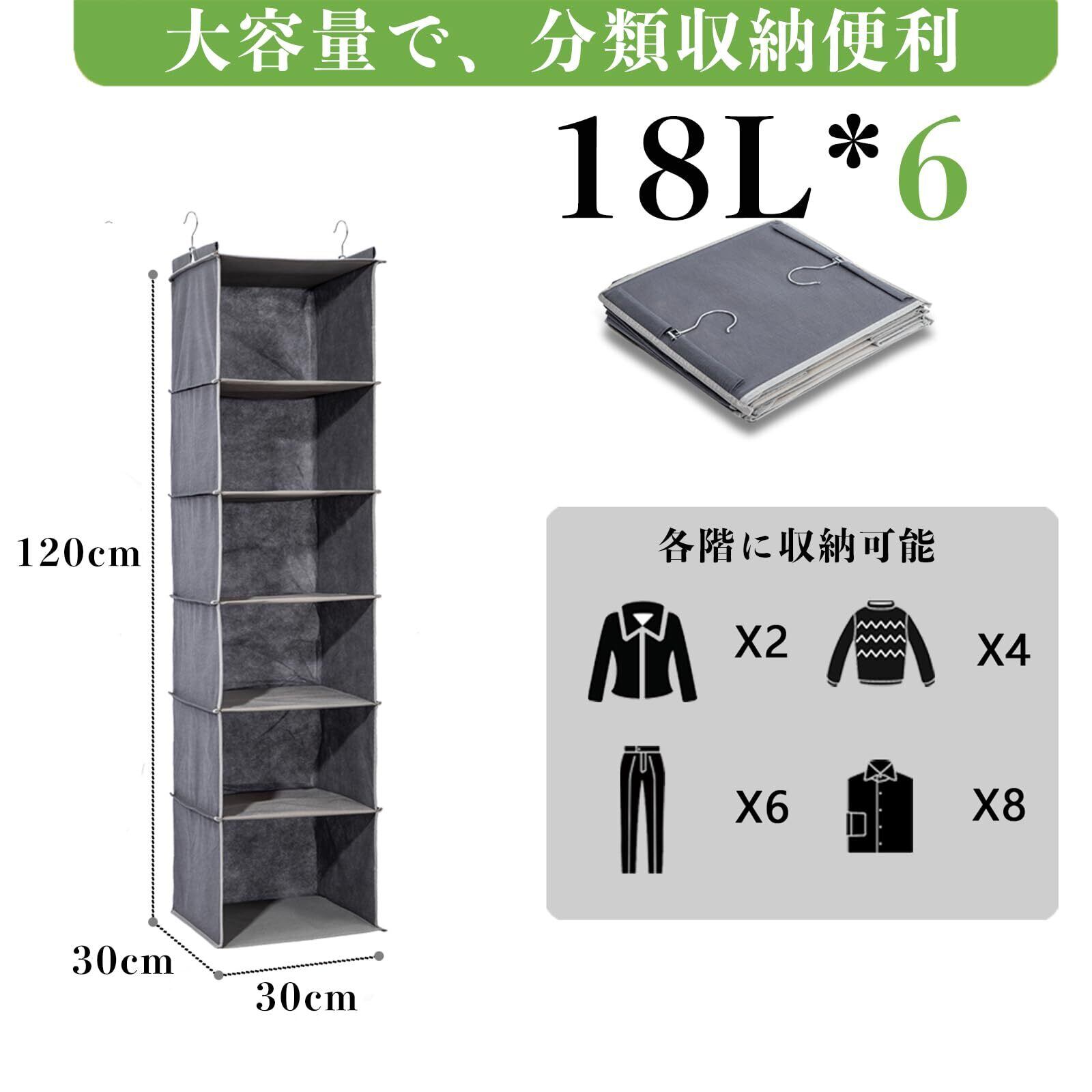YRCBEHFU 吊り下げ収納 6段 衣類ラック 【竹製天然版】 クローゼット 収納吊り下げ 2件 大容量 帽子/鞄 収納/旅行/出張 取付簡単 折り畳み式 30x30x120cm (2#6段、グレー)