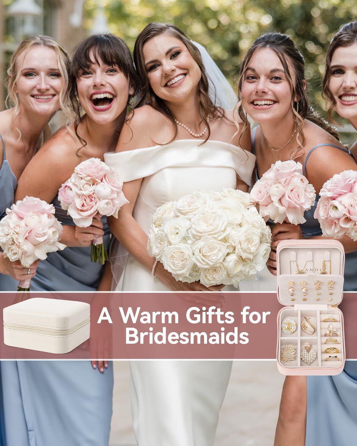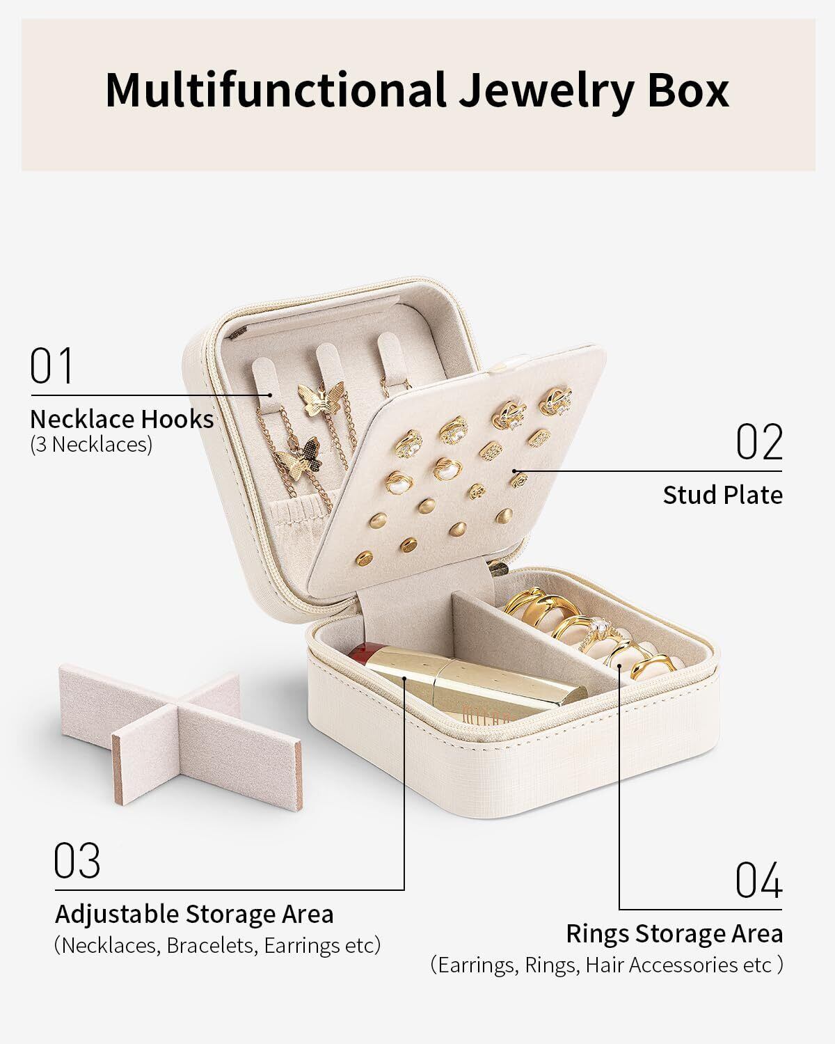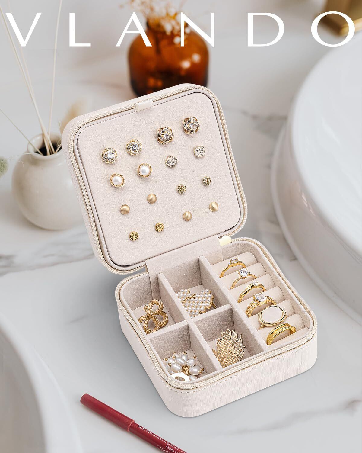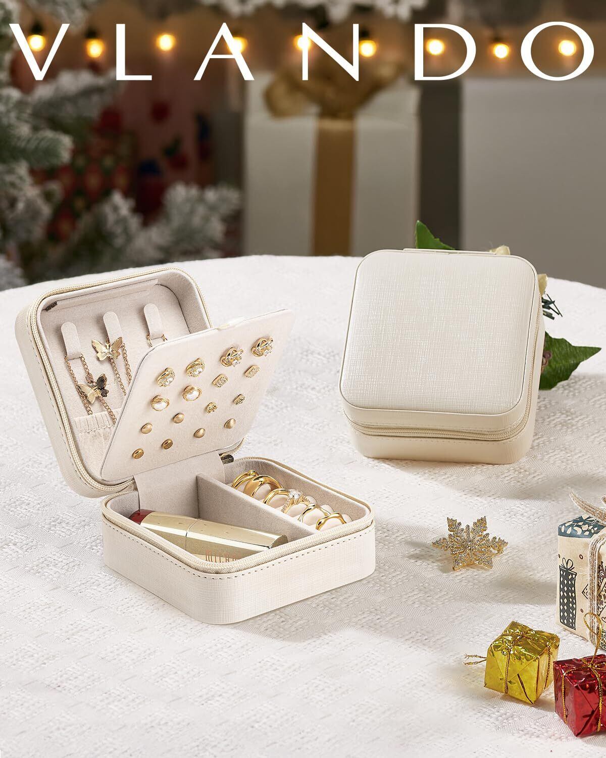 Vlando 正方形アクセサリーケース 持ち運び 小物入れ ジュエリーケース 持ち運び イヤリング 収納 誕生日プレゼント-ホワイト