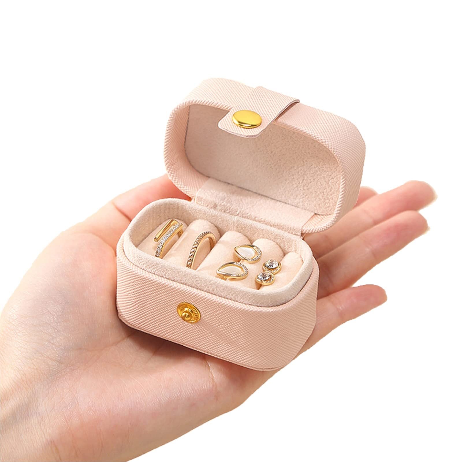 IM-Doiry ミニジュエリーボックス 携帯用 小箱 持ち運び コンパクト ジュエリー 宝石箱 ジュエリー収納 アクセサリーケース 小物入れ 指輪 ピアスケース 旅行 出張 (ピンク)