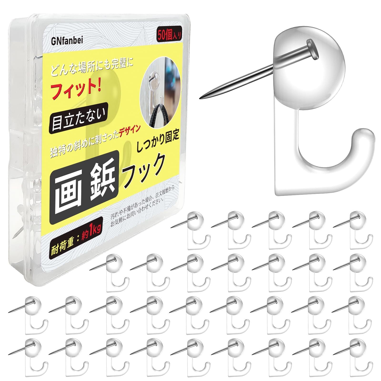 ピンフック 50枚入り 耐荷重1KG 画鋲ふっく 穴の目立たない 壁掛けフック DIY 小物掛け 石膏ボード・ベニヤ・木用フック クリア