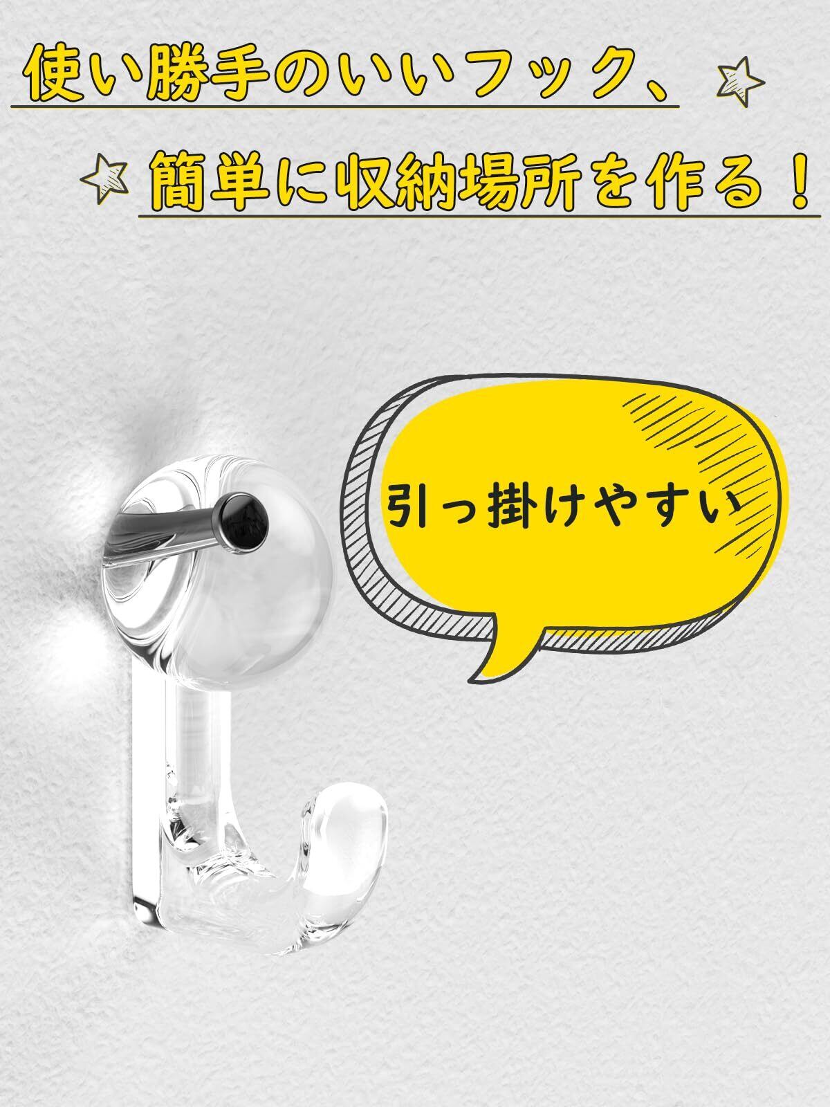【目立たないクリアデザイン】透明タイプのフックで、壁や家具の色・質感を選ばず、どんな空間にも自然にフィット。お部屋の雰囲気を損なわず、見た目もすっきり美しく保てます。