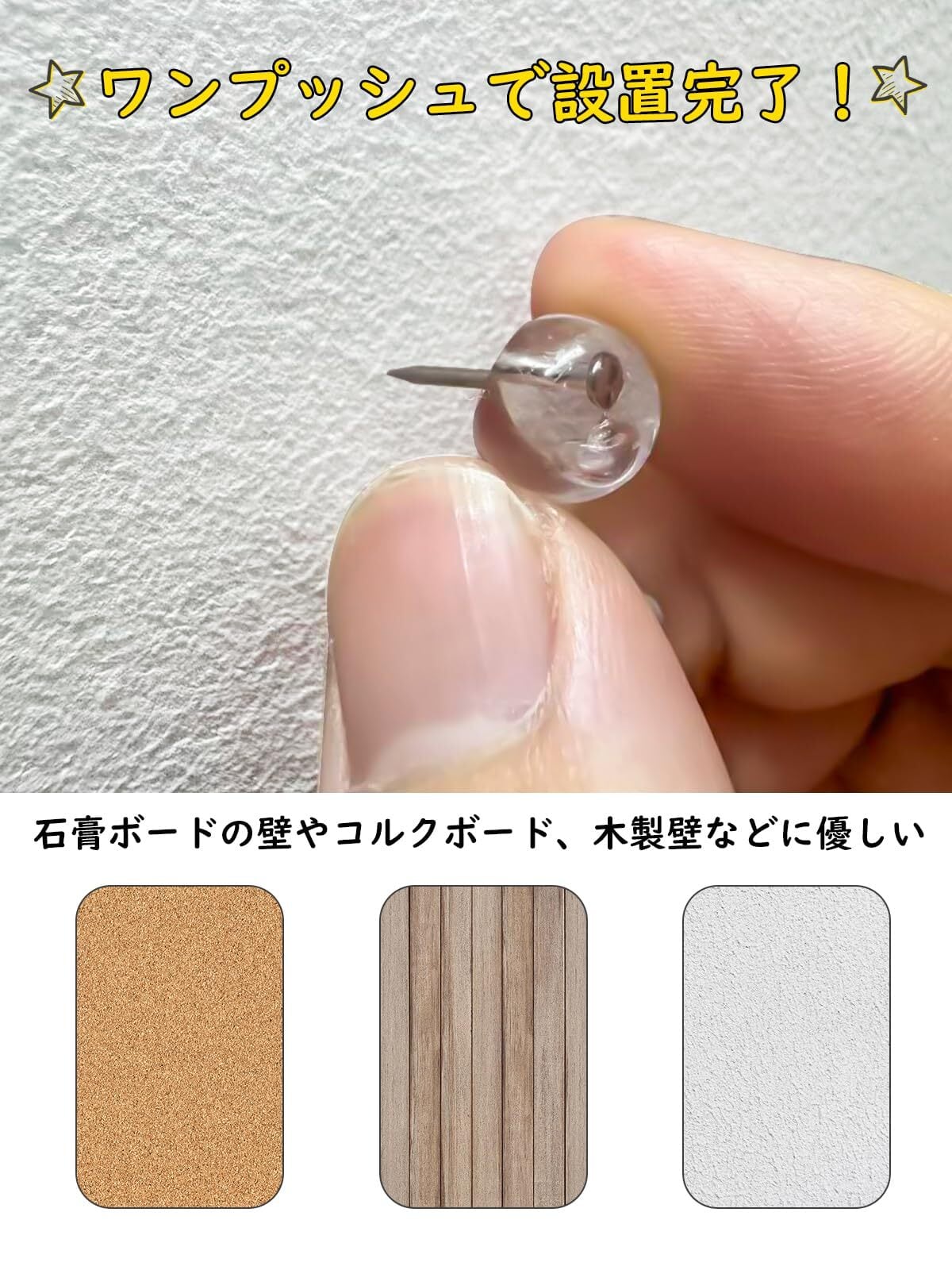 【壁に優しい・画鋲フック】細いピンを使用した画鋲タイプのフックは、使用後の跡が目立ちにくく、賃貸住宅や壁をきれいに保ちたい方にぴったりです。パッケージ内容:ピンフック×50枚