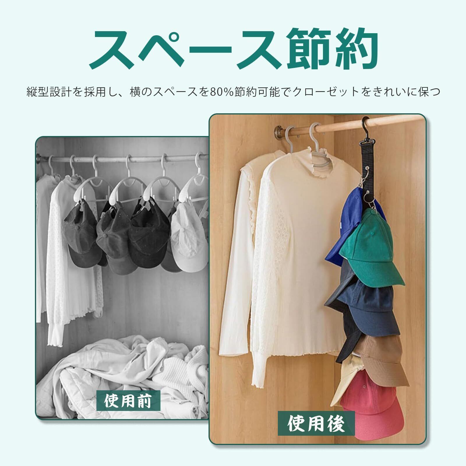 【スペース節約】長さ約72.5CMで縦型デザインを採用し、この帽子掛けに縦に帽子などを8個収納できます。横のスペースを80%節約可能で、クローゼットをきれいに保ち、日常生活に大変便利な重宝な存在です。