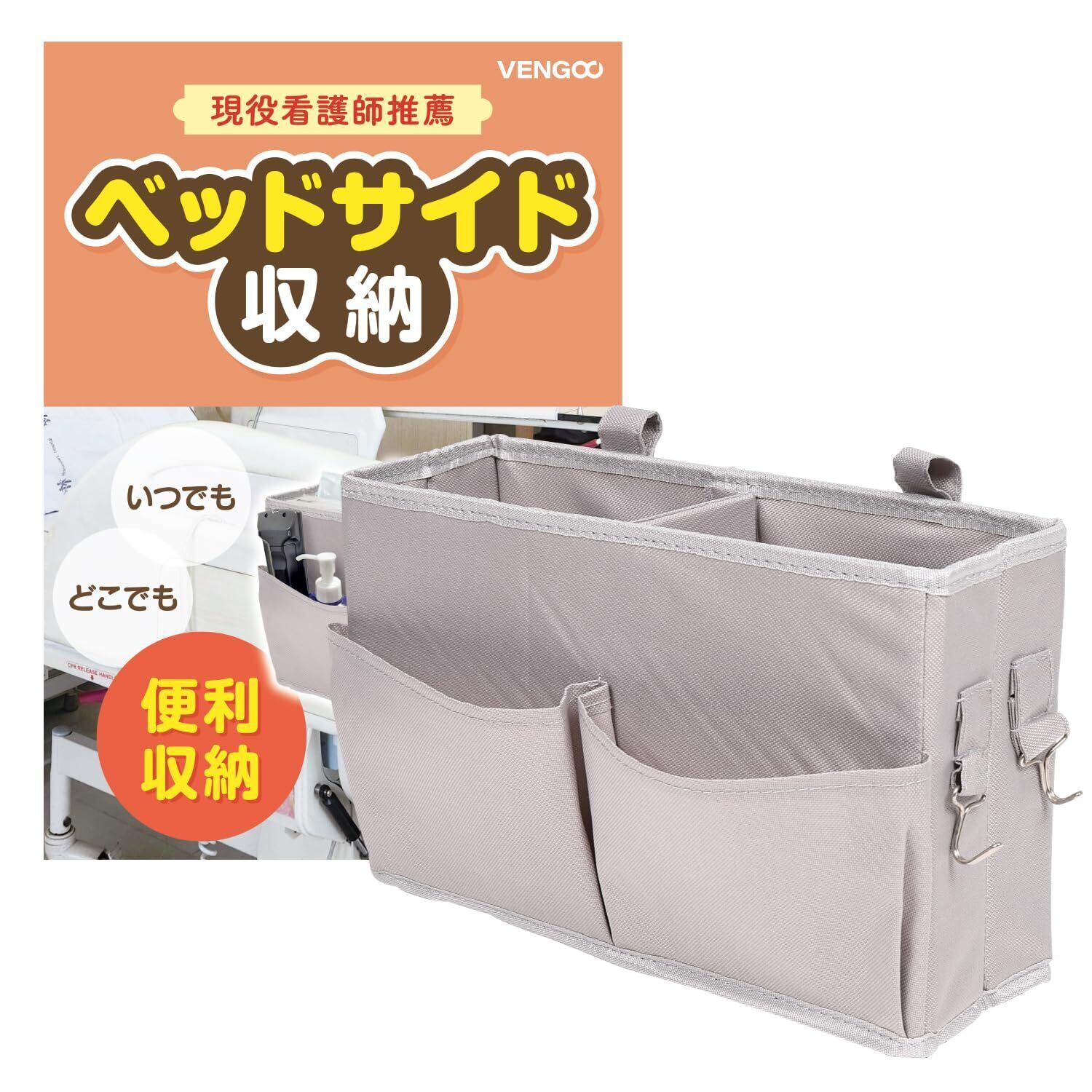 ベッドサイド 収納 ベッドサイドポケット かご【高齢者施設監修】仕切り 片側フック マジックテープ 車 チェア ベビーカー グレー VENGOO