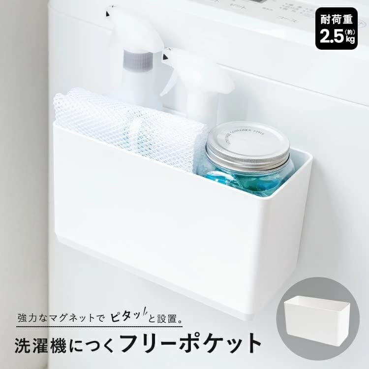 アスベル 洗濯機収納 省スペース ラックスMGフリーポケット 多目的 マグネット 白 滑り止め付 A5755