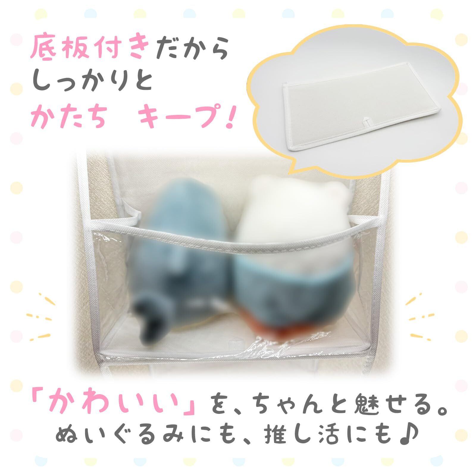 【見せる収納でかわいく飾れる】 透明ポケット仕様で、中身がしっかり見える“魅せる”デザイン。お気に入りのぬいぐるみや推しグッズを可愛く飾りながら収納できます。