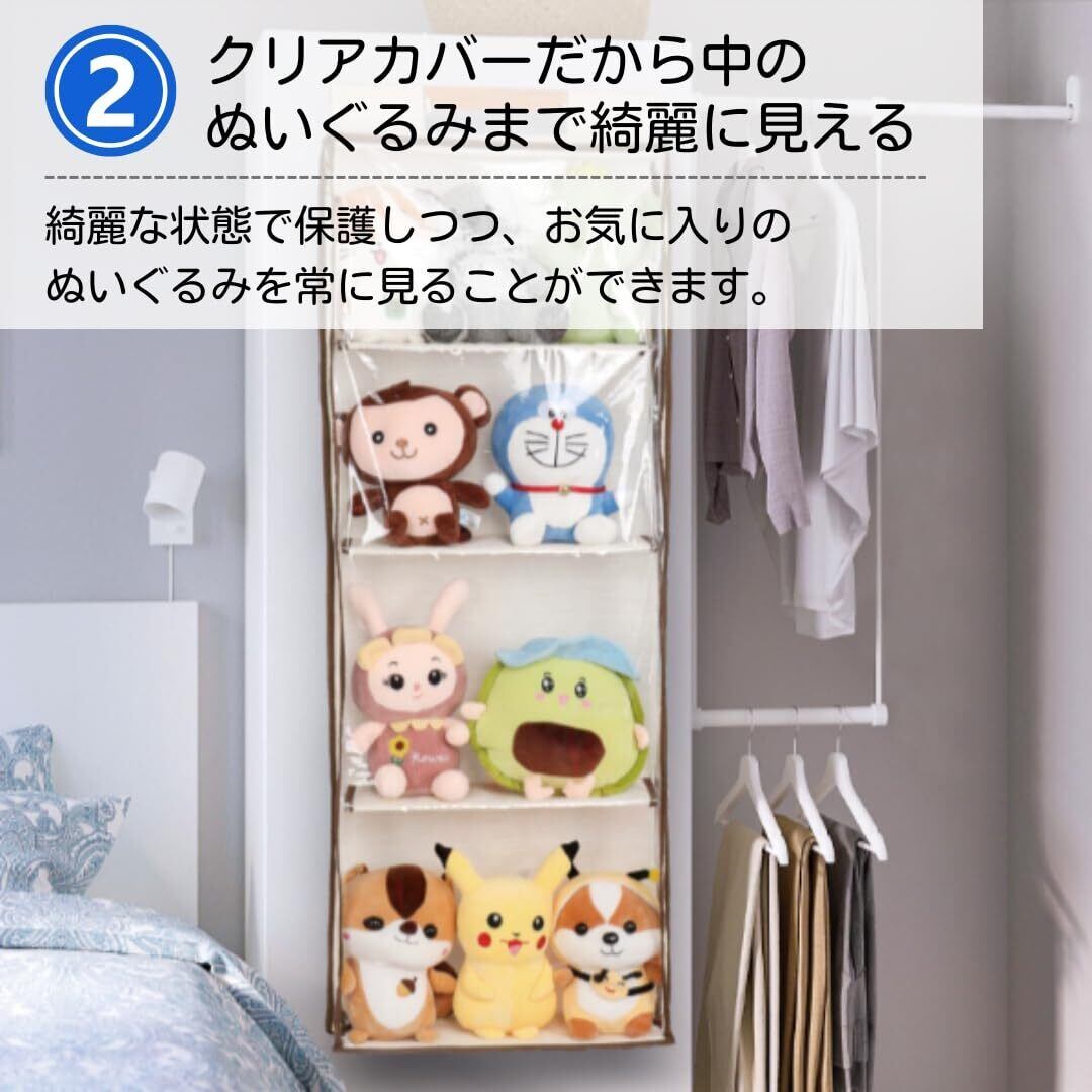 【常に綺麗な状態でぬいぐるみを保管】クリアカバーのため収納したぬいぐるみを常に見ることができるうえ、綺麗な状態を保つことができます。