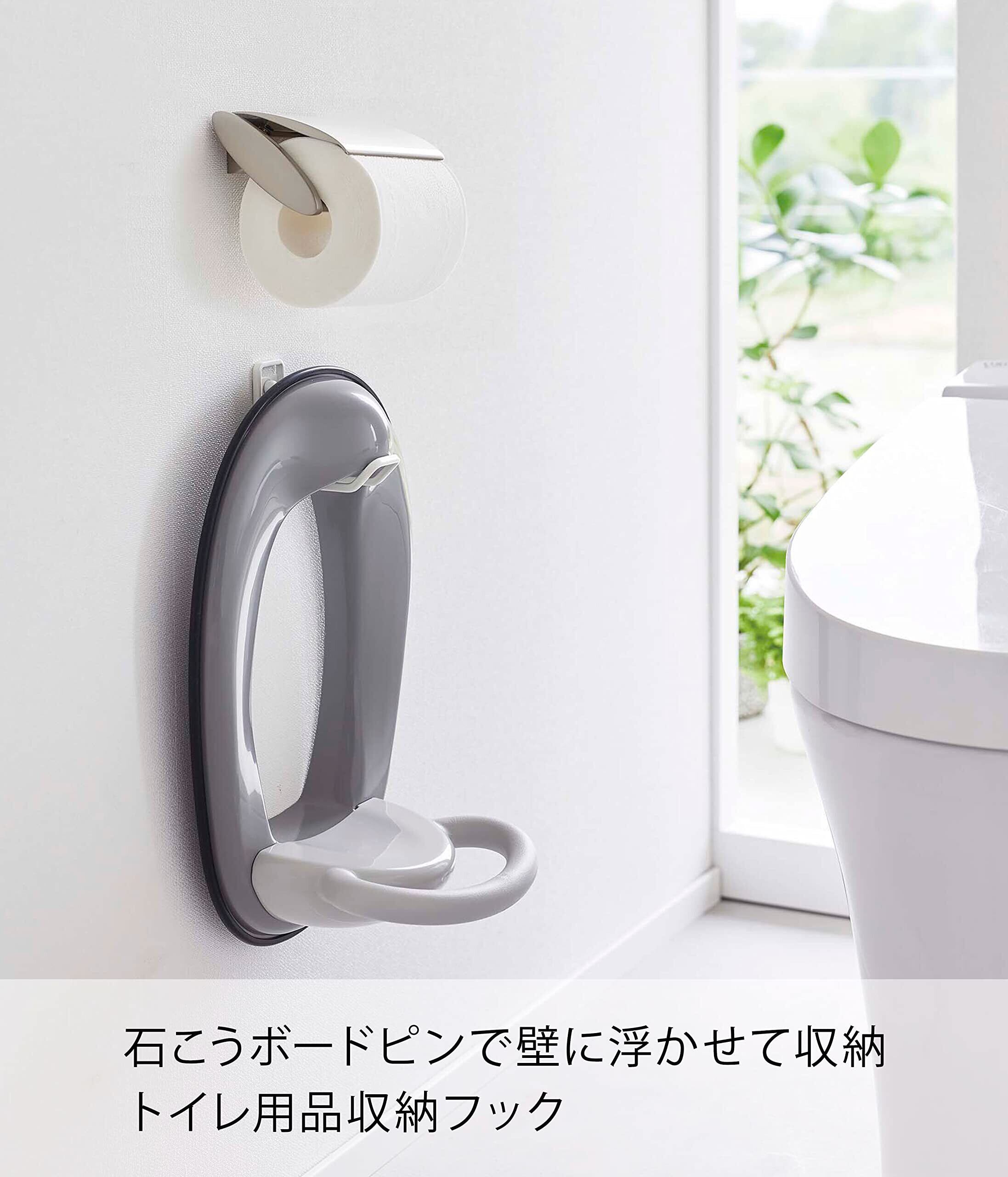 石こうボードピンで壁に浮かして設置できるトイレ用品収納フック。