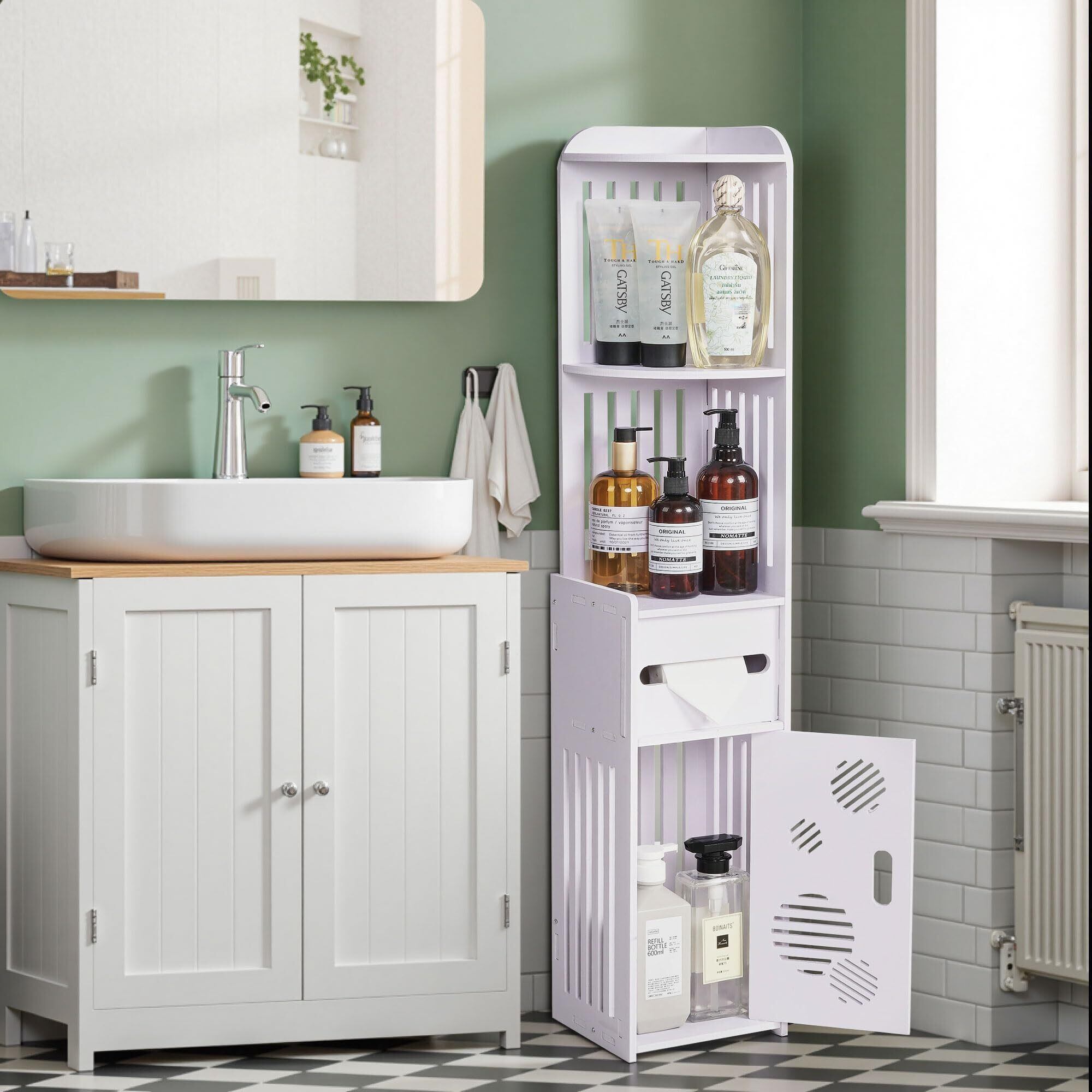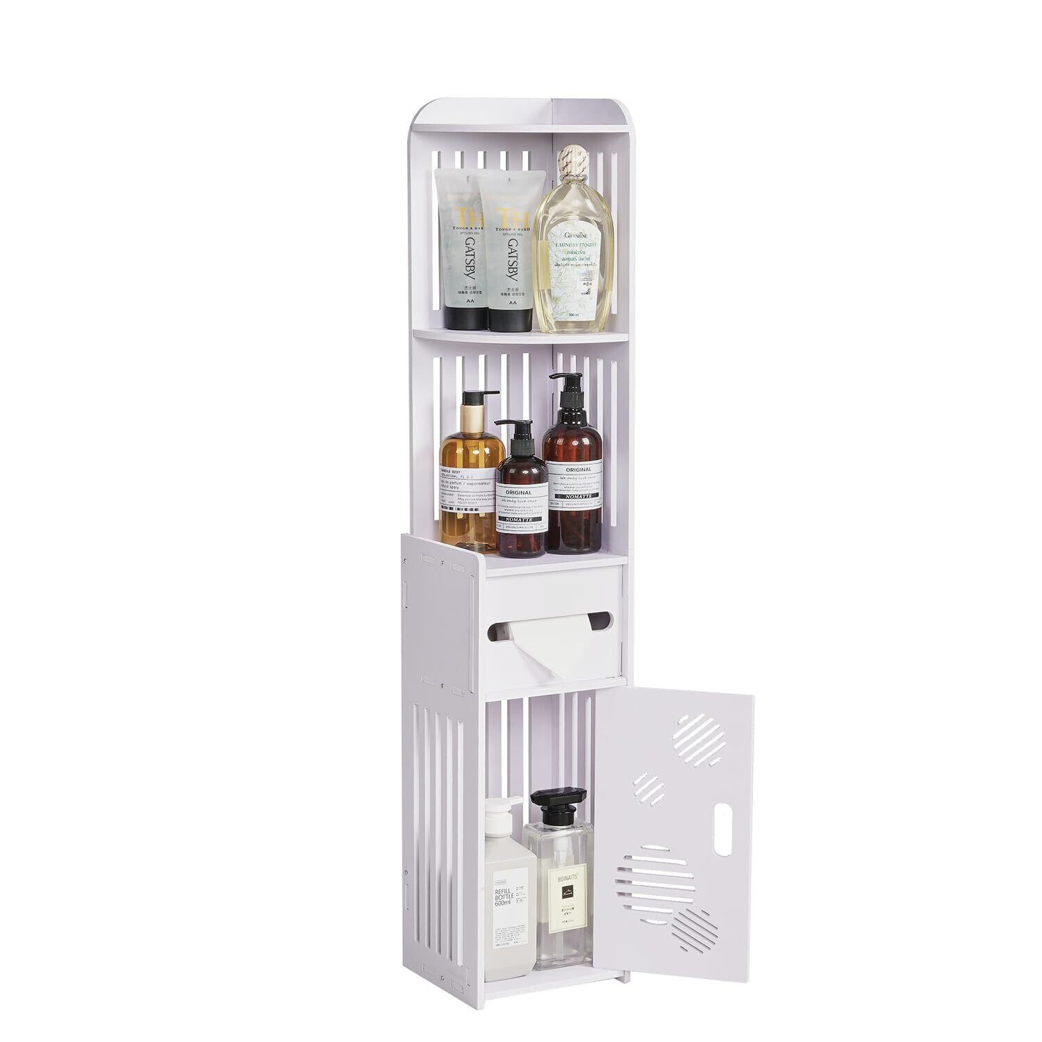 VECELO トイレ収納 ラック トイレ 棚 トイレラック 隙間収納 省スペース バスルーム収納棚 幅20x奥行き18x高さ100cm スリム 収納ラック 防水 防湿 組立簡単 トイレ・洗面所・リビング適用 ホワイト