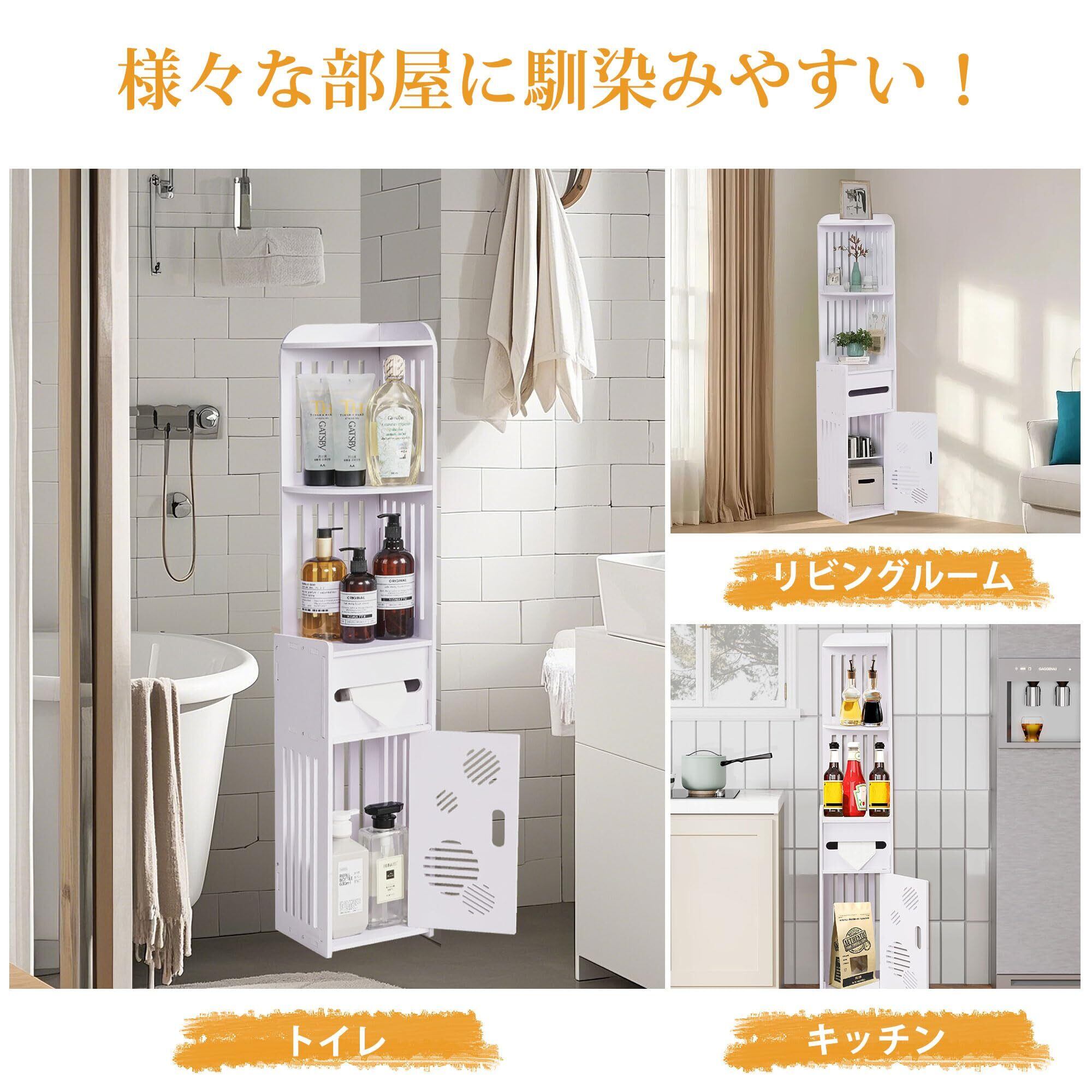 このスリムトイレ収納ラックは、狭いスペースを有効活用できる実用的な収納アイテムです。