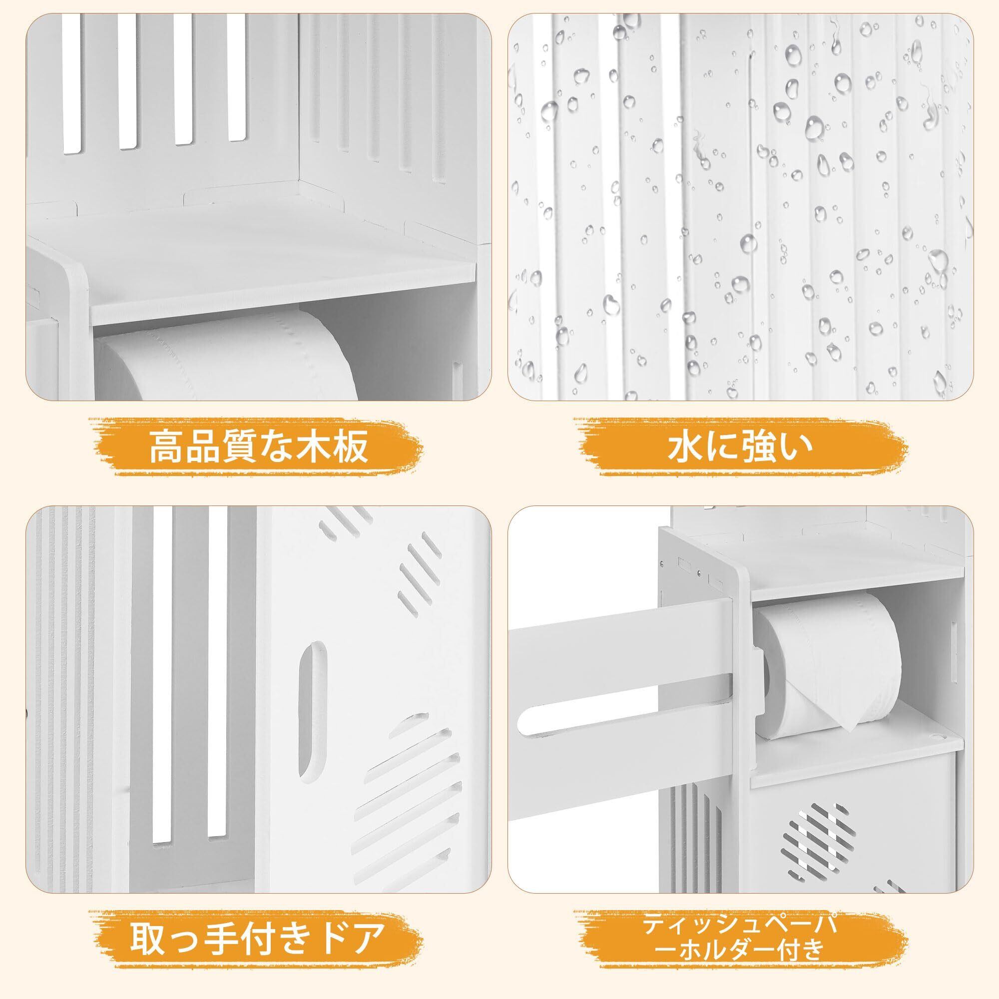 【防水・防湿設計】 高品質な素材から作られたトイレ棚は、防水・防湿性能に優れています。お風呂場や洗面所の湿気が多い場所でも安心して使用でき、お手入れも簡単です。