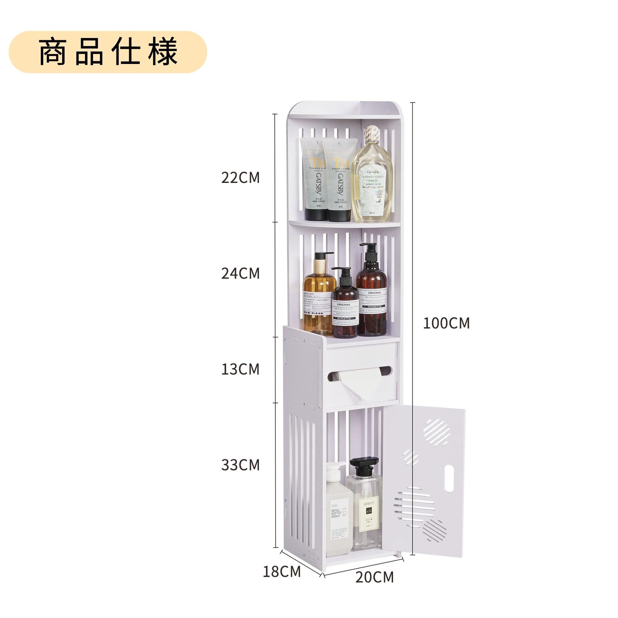 【スリム設計・隙間を有効活用】 幅20×奥行18×高さ100cmのコンパクトなトイレ収納ラックは、狭いスペースにピッタリ!トイレや洗面所、キッチン、リビングなど、ちょっとした隙間に置くだけで収納力がアップします。