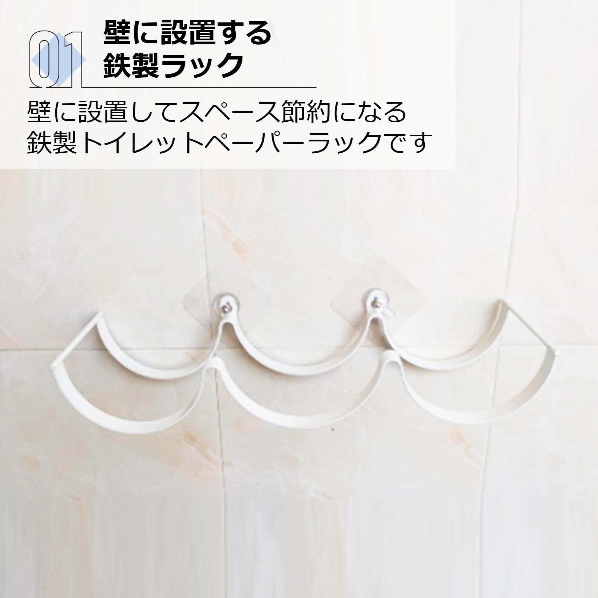【壁に設置する鉄製ラック】壁に設置してスペース節約になる鉄製トイレットペーパーラックです。おしゃれかつ多くのトイレットペーパーを乗せることができます。