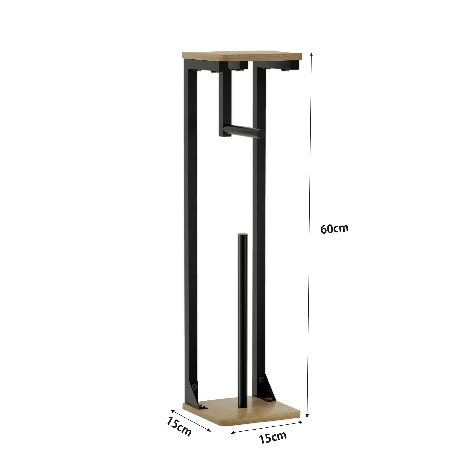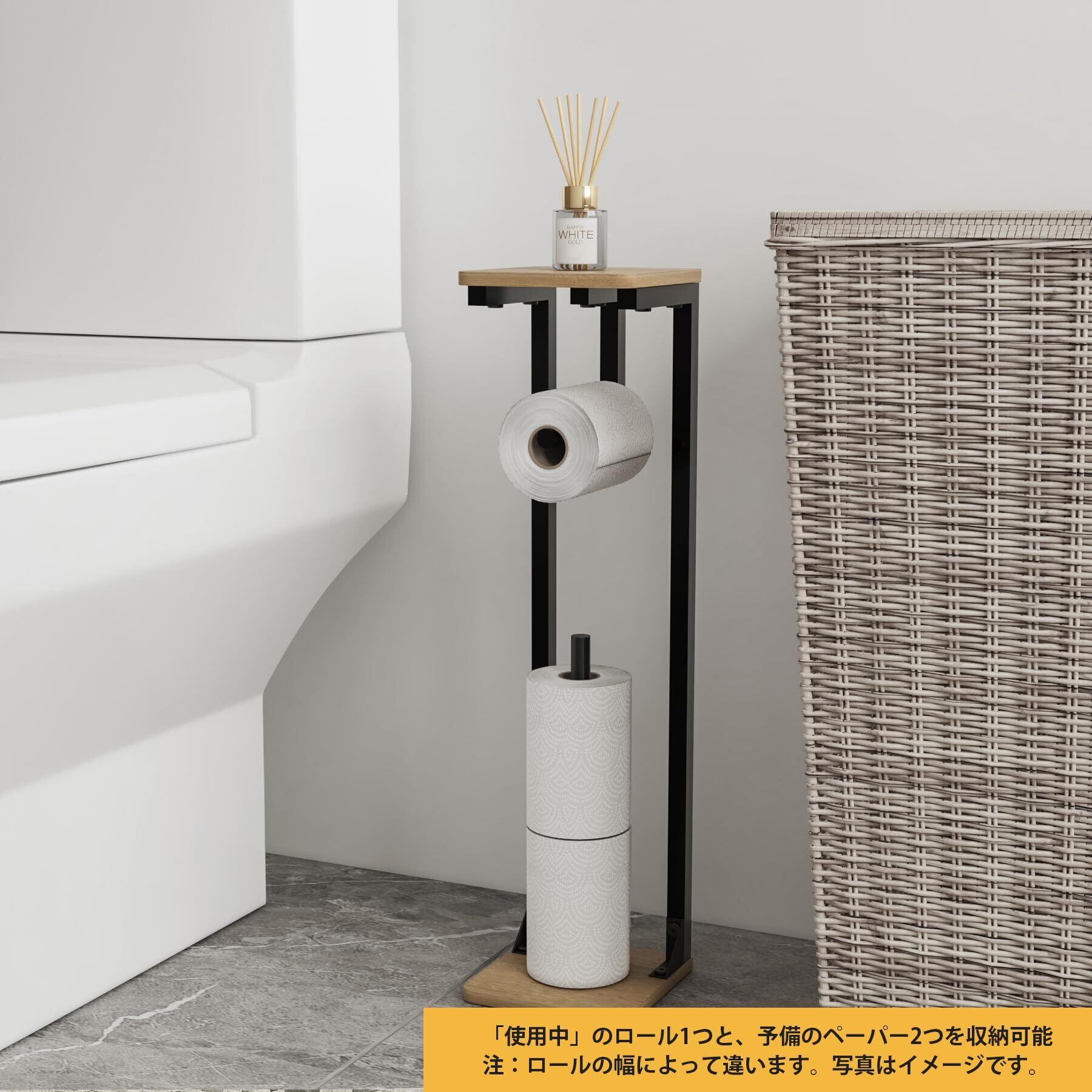 Druviaトイレットペーパーホルダー スタンド型 予備収納付き トイレ収納ラック 防水木製天板 金属フレーム スリムデザイン 幅15cm×高さ60cm ナチュラル 組立式