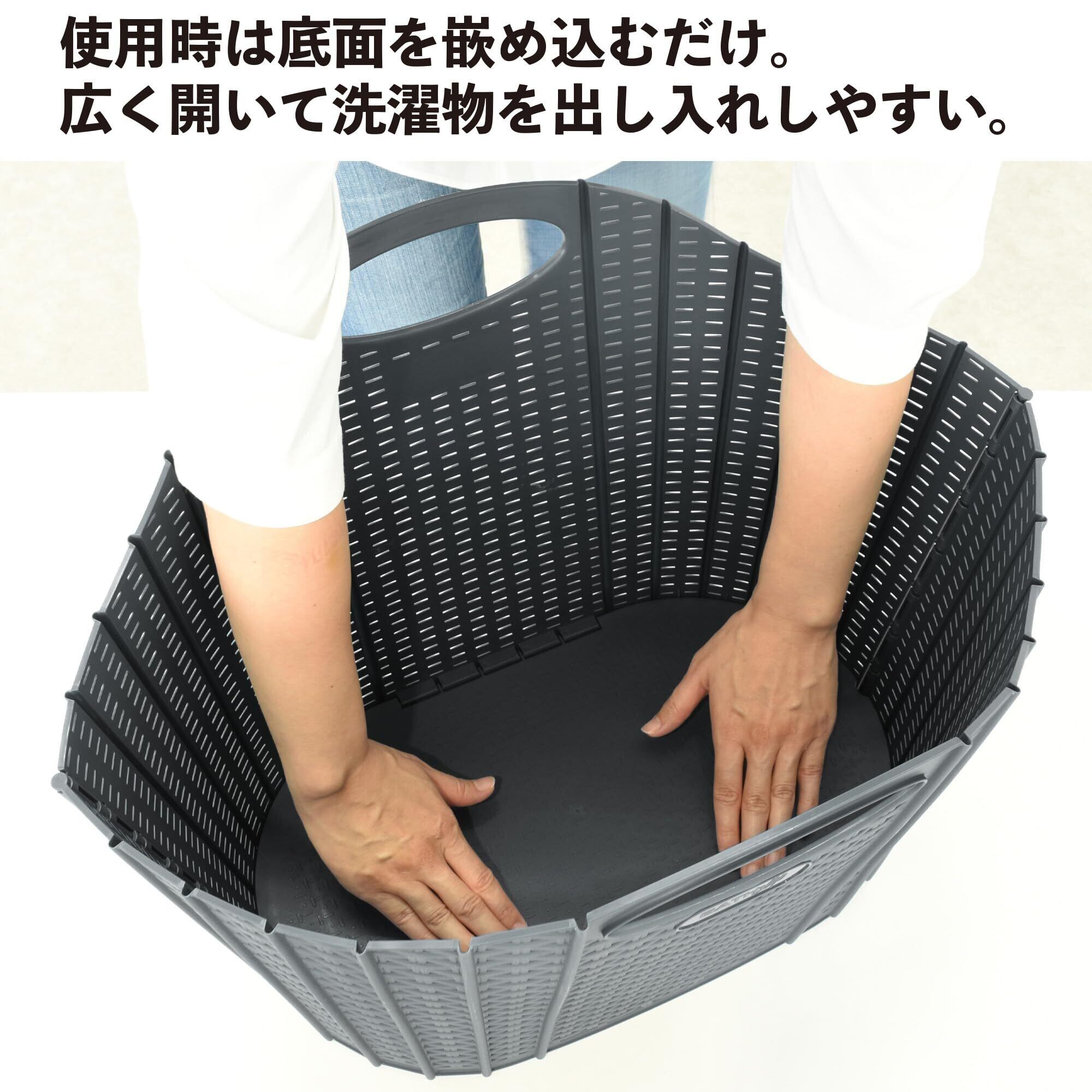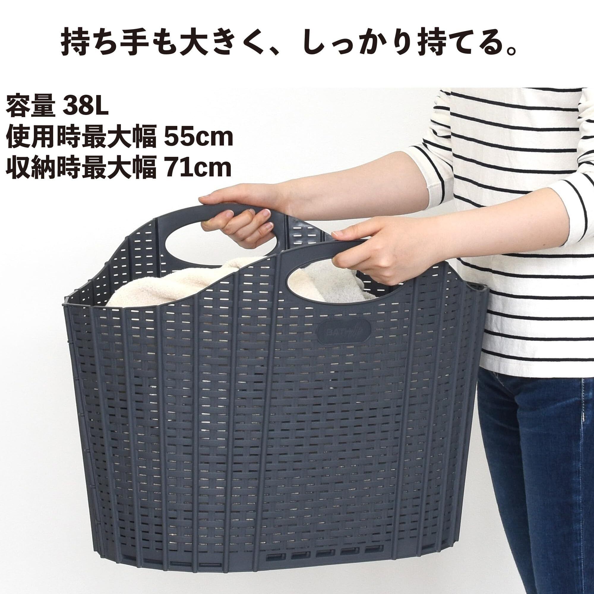 セイエイ(seiei) 【 折りたためる ランドリー バスケット ラタン調 グレー (大) 38L 120885 新パッケージ】ランドリーバスケット ランドリー収納 洗濯カゴ 洗濯物収納 物干し 洗濯かご 大容量 折りたたみ ランドリー収納 おしゃれ 軽量 取っ手付き