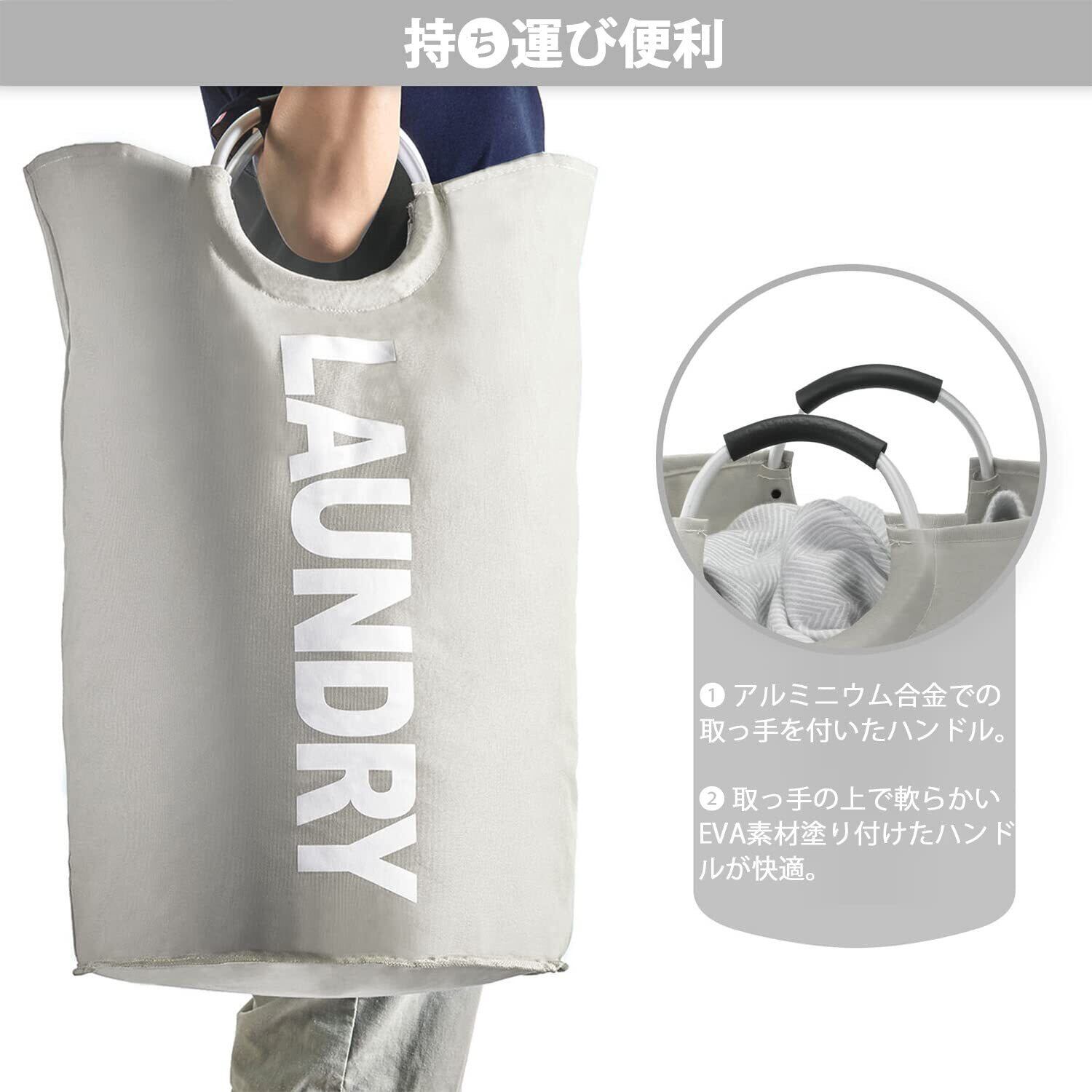 YOUDENOVA ランドリーバスケット 大容量82L せんたくかご 85%防水性 折りたたみ 撥水加工 耐荷重15KG 洗濯物入れ 取っ手付き ランドリーバッグ 衣類収納 寝室 脱衣所 リビング クローゼット内 幅38×高さ72(cm) (ライトグレー)