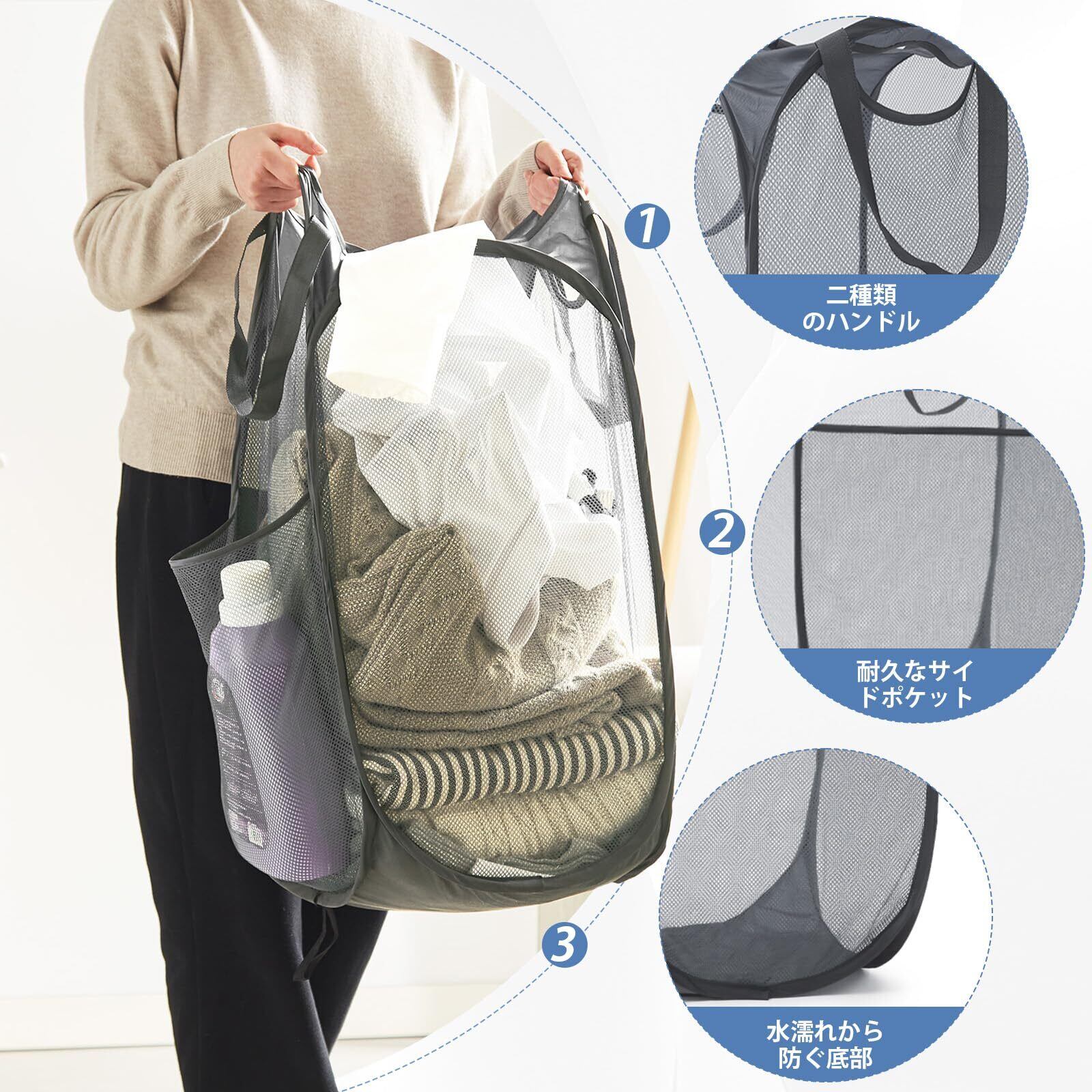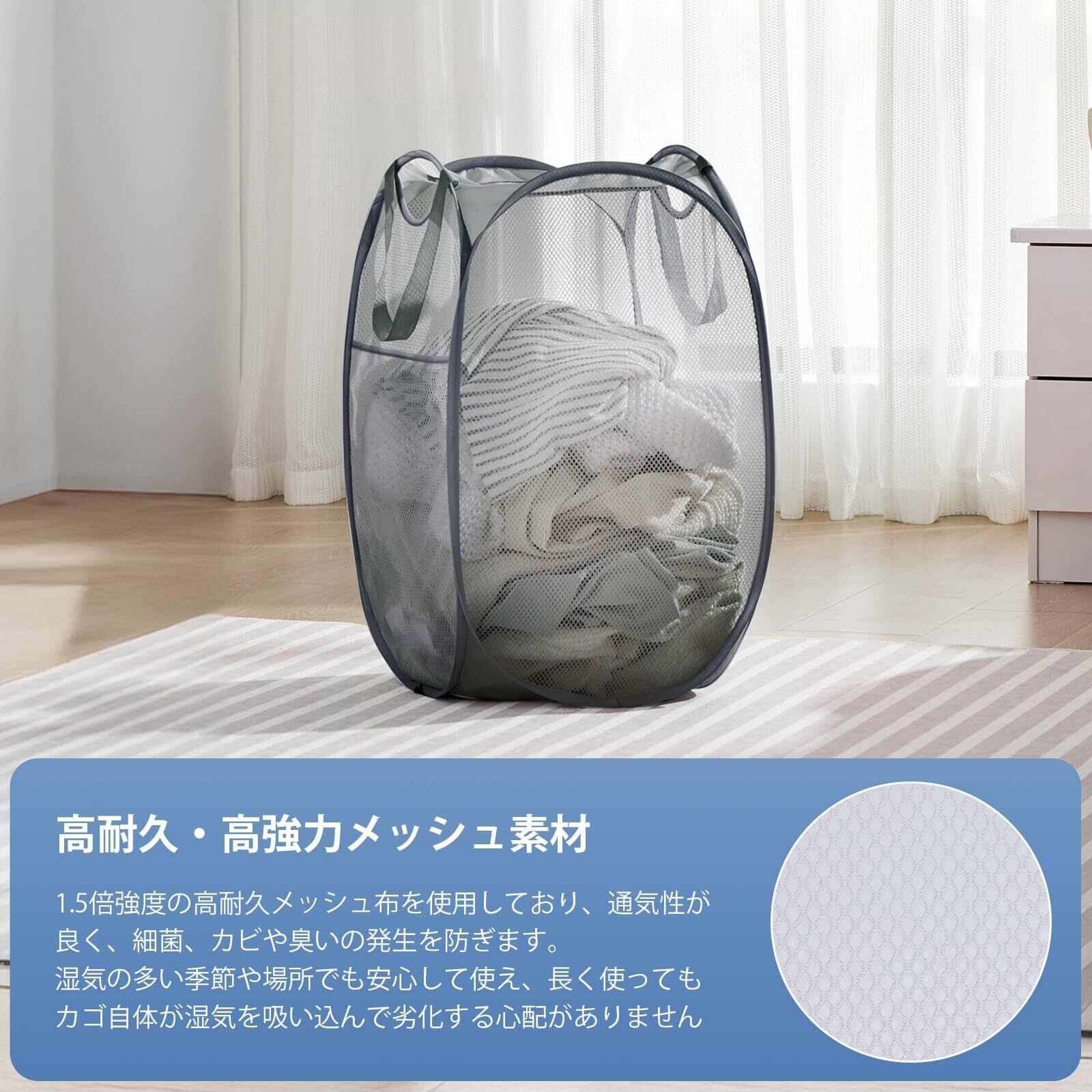 【メッシュ素材】メッシュ素材を採用し、優れた通気性を実現。湿気や臭気がこもりにくく、洗濯かごとして快適にご利用いただけます。丈夫な鋼線フレームにより、安定した支えを提供し、さび止め技術で長持ちします。
