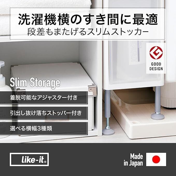 ライクイット(like-it)ランドリー収納段差をまたげるすき間ストッカー 3段 約幅15.5×奥46.5×高92-94.5cm ポリプロピレン ホワイト日本製 FTS-111A