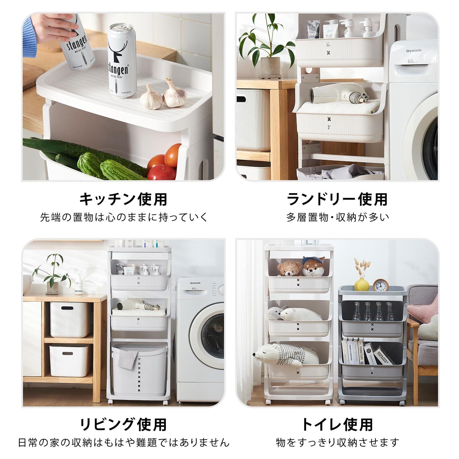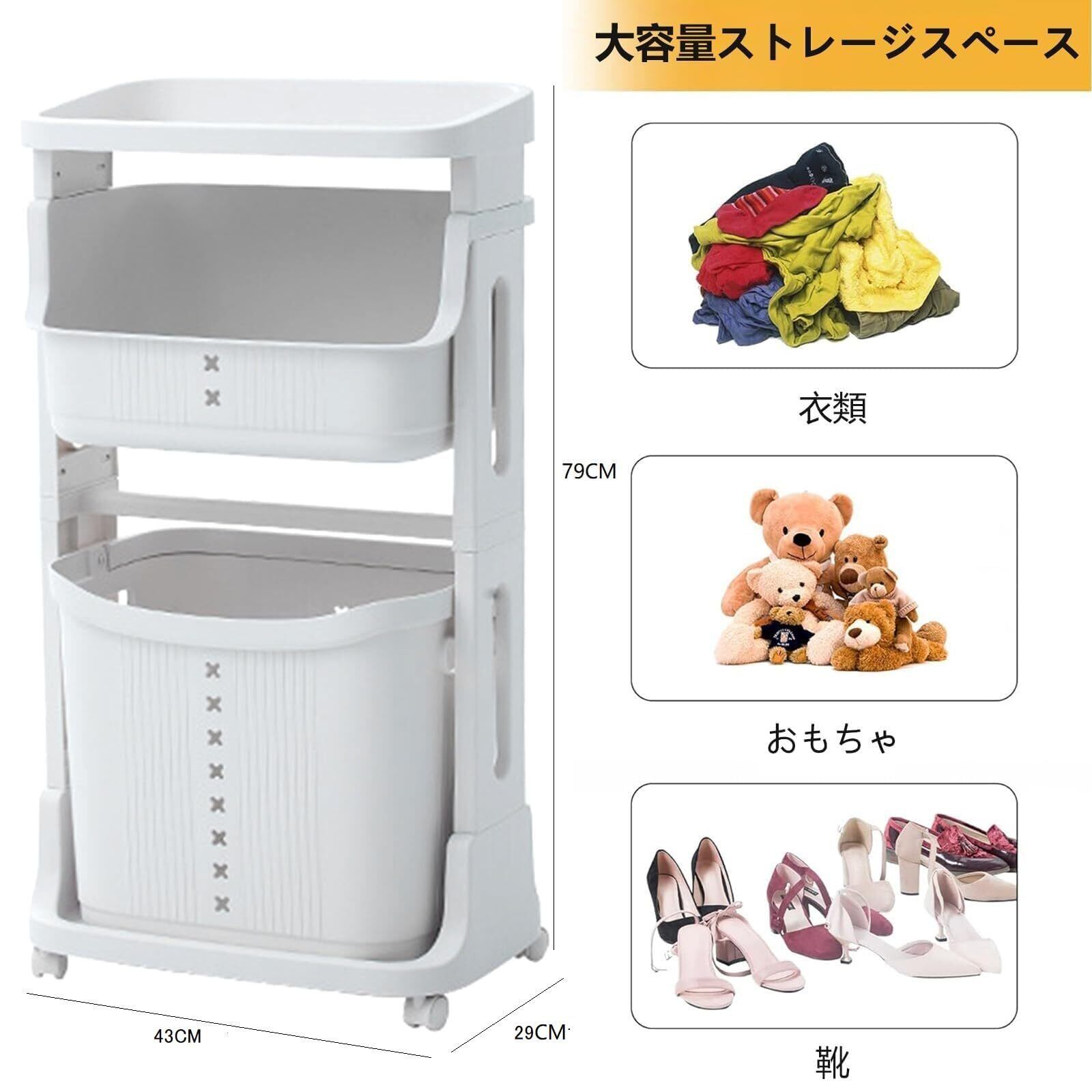 seacall ランドリーバスケット 3段 ランドリーワゴン 洗濯かご 脱衣所 収納 ランドリー収納 キャスター付き取り外し可能な ランドリー 収納棚 果物と野菜のおもちゃの収納 リビングルーム キッチン収納に (三階)
