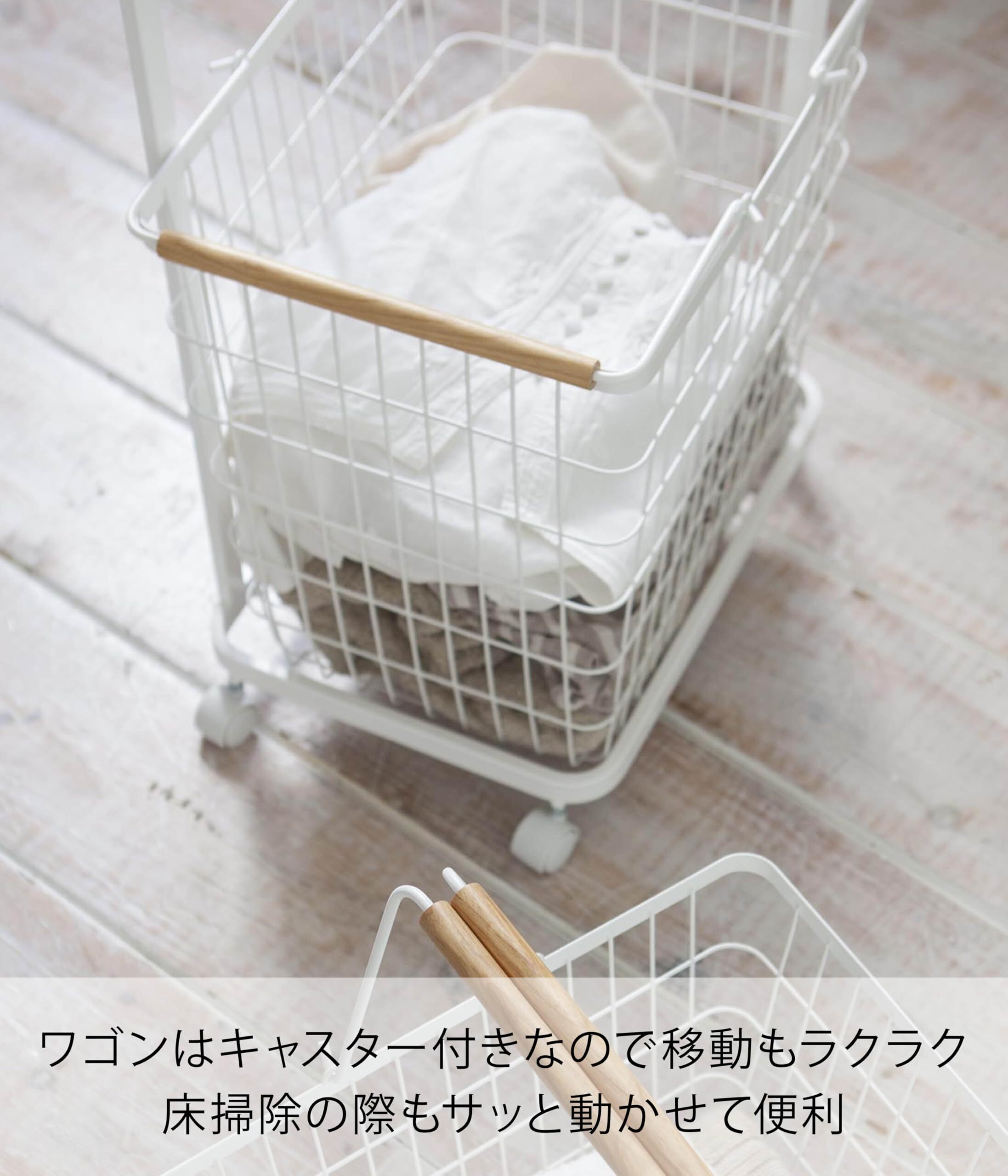 山崎実業(Yamazaki) ランドリーワゴン + バスケット ホワイト 約W41.5×D31×H94cm トスカ tosca 洗濯カゴ キャスター付き 大容量 3300