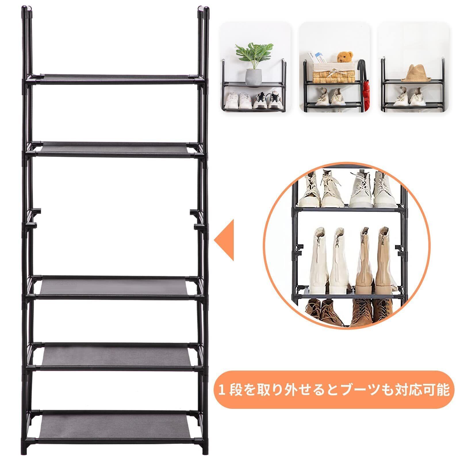 【分割可能】シューズラック全体で12~18足の靴を収納可能「各段に2ー3足」。ニーズに応じてラックに分けて使うが可能です。棚は取り外せてブーツなども収納可能です。