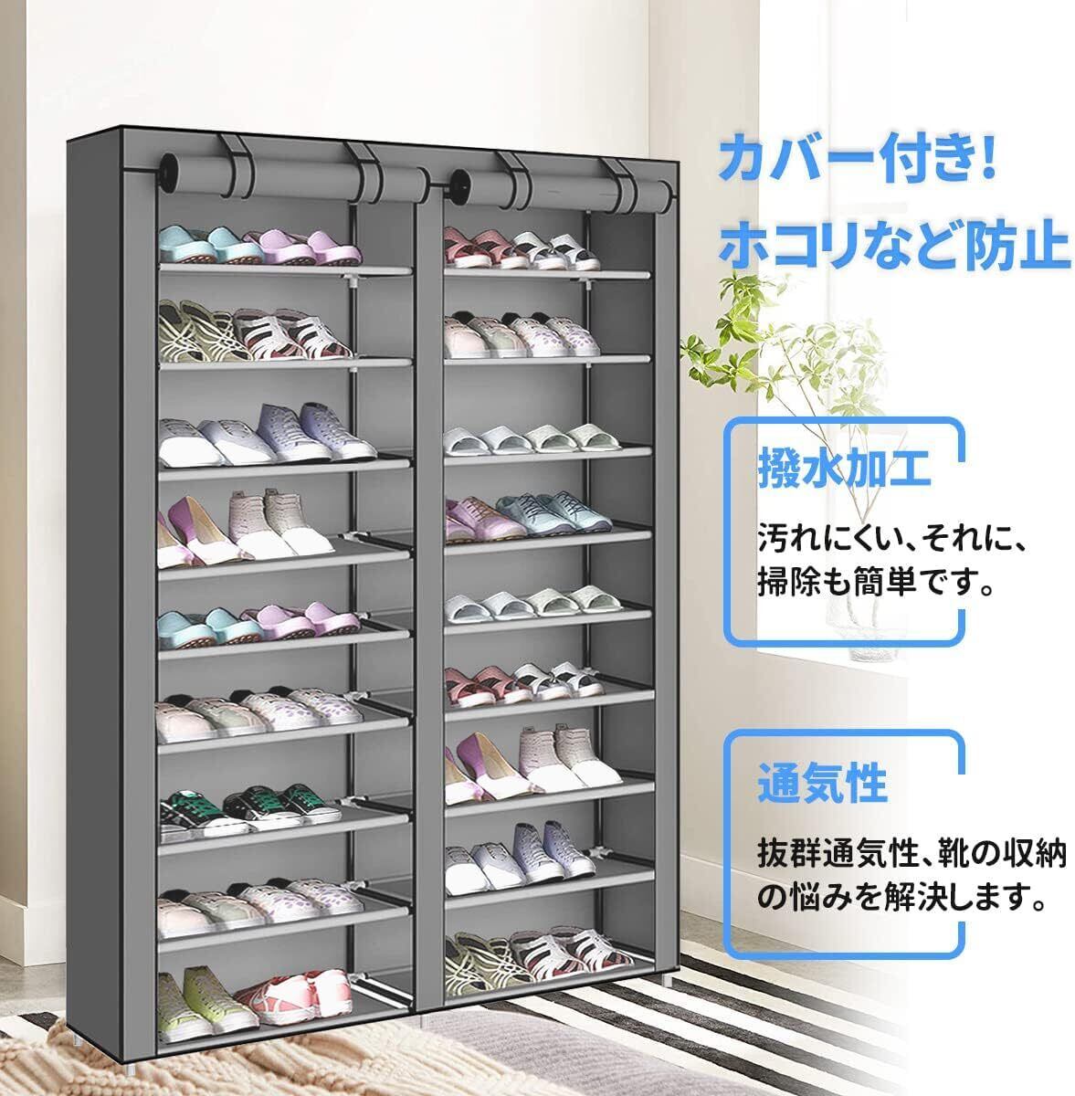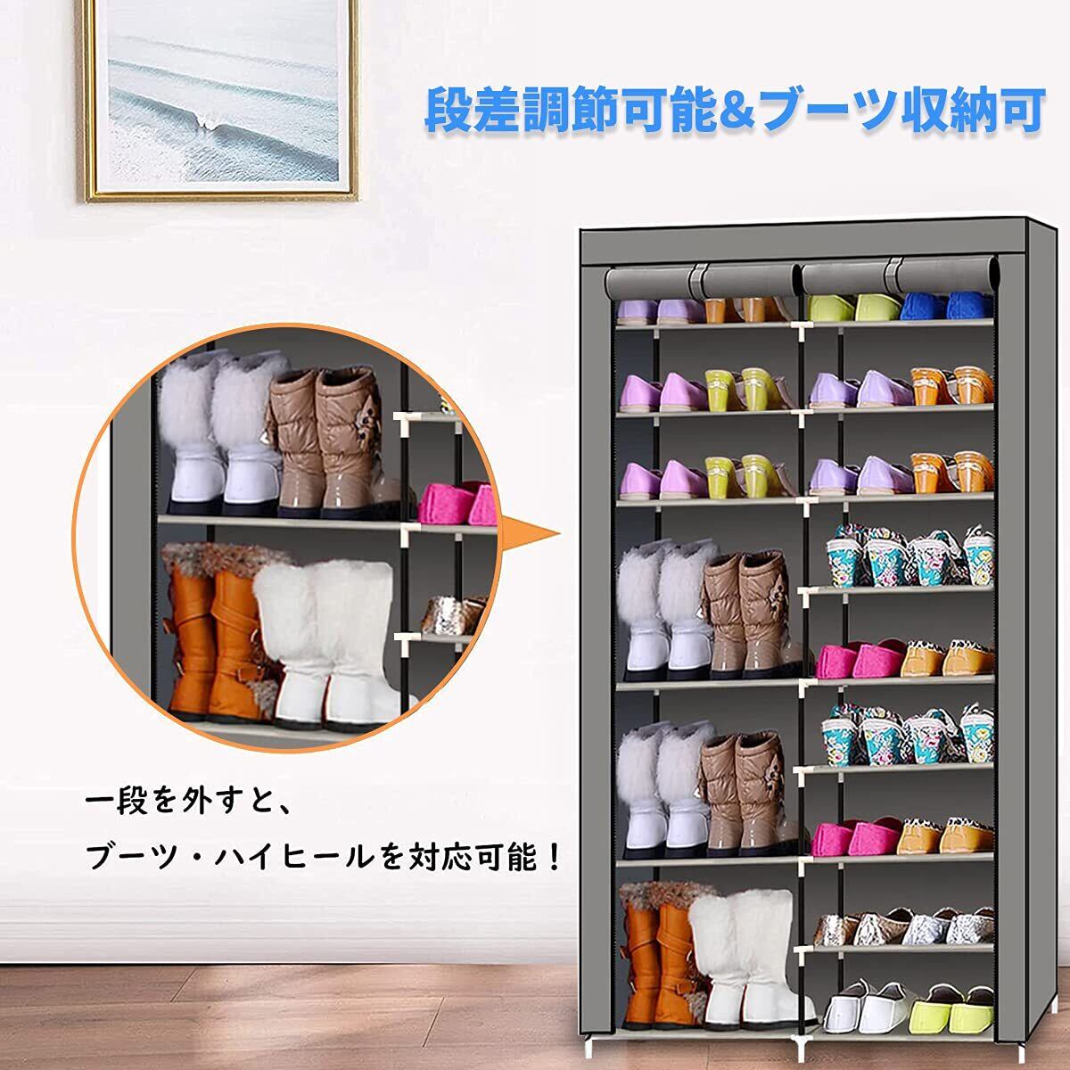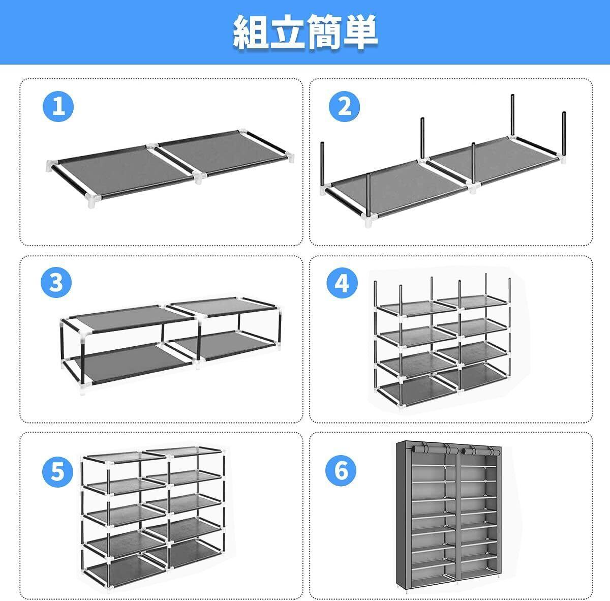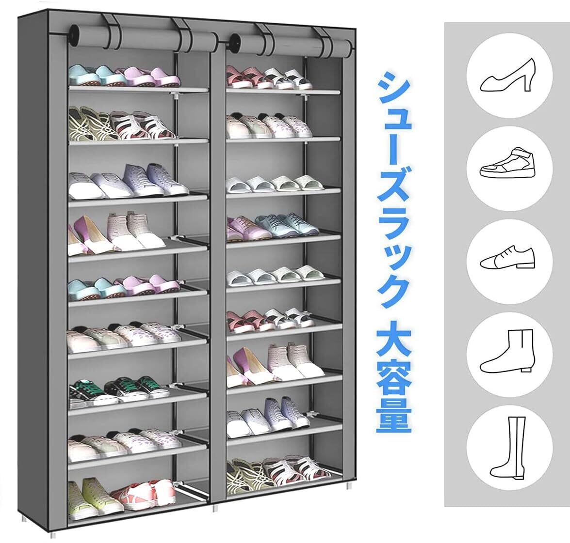 【高品質シューズラック】: 1.パイプ - 直径13mmのプラスチックをコーティングした太い鉄パイプ、防錆、丈夫で長持ち、耐荷重能力が優れるなどの特徴があり、長く使っても変形しにくいので、安心してご利用いただけます。2.埃やカビやダニから靴を守る不織布カバー付きで、来客時の目隠しにも最適です。靴の収納に関する様々な悩み一気に解決!3.ジョイント - 高強度環境配慮型PPプラスチック材料で作られ、耐摩耗性、安定性が優れたから、パイプをしっかり支え、横揺れしないようにします。