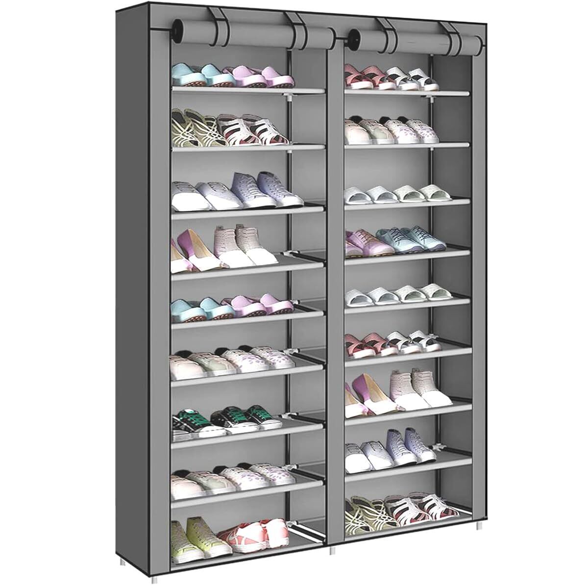 AZAKBL シューズラック 36足 2行 9層 組み立て式 大容量 下駄箱 スリム 玄関収納 おしゃれ 靴入れ 靴棚 不織布カバー付き 省スペース 防水 防塵 防汚 幅約90×奥行30×高さ167cm