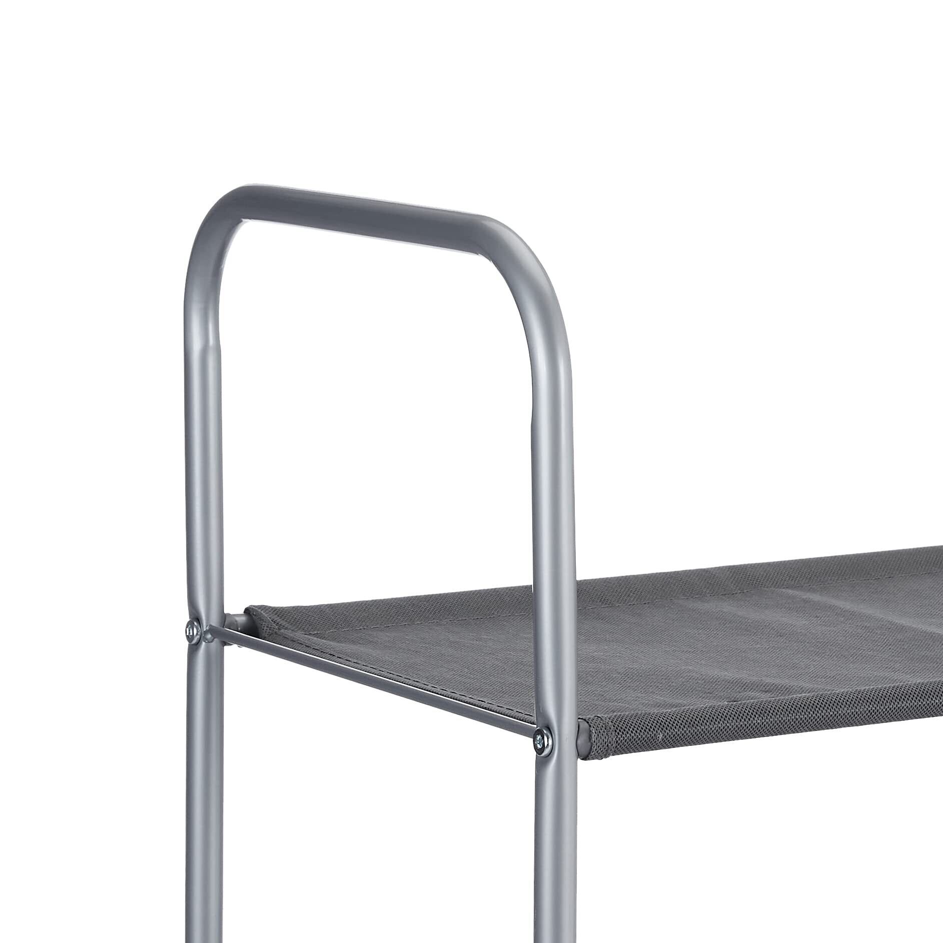 各棚の耐荷重は4.5kg。各引き出しの最大積載量は2.25kg。スタイリッシュで通気性の良いダークグレーの生地。