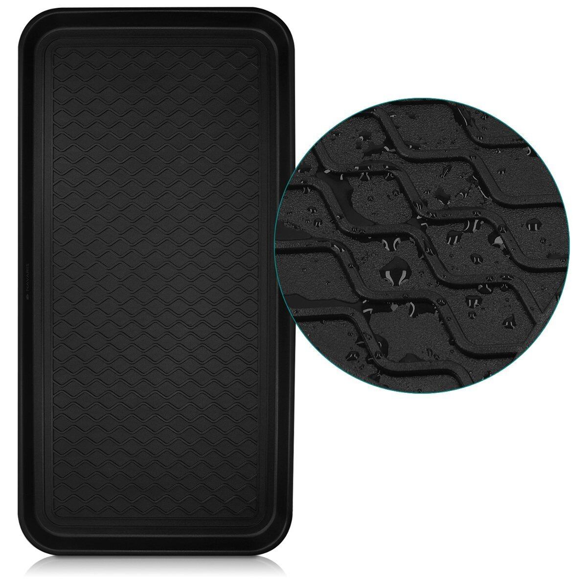 Navaris プラスチック 靴おきプレート シューズマット トレイ - シューズトレイ 80x40x3cm ブラック 縁あり - ドリップトレイ シューズ 雨 秋冬