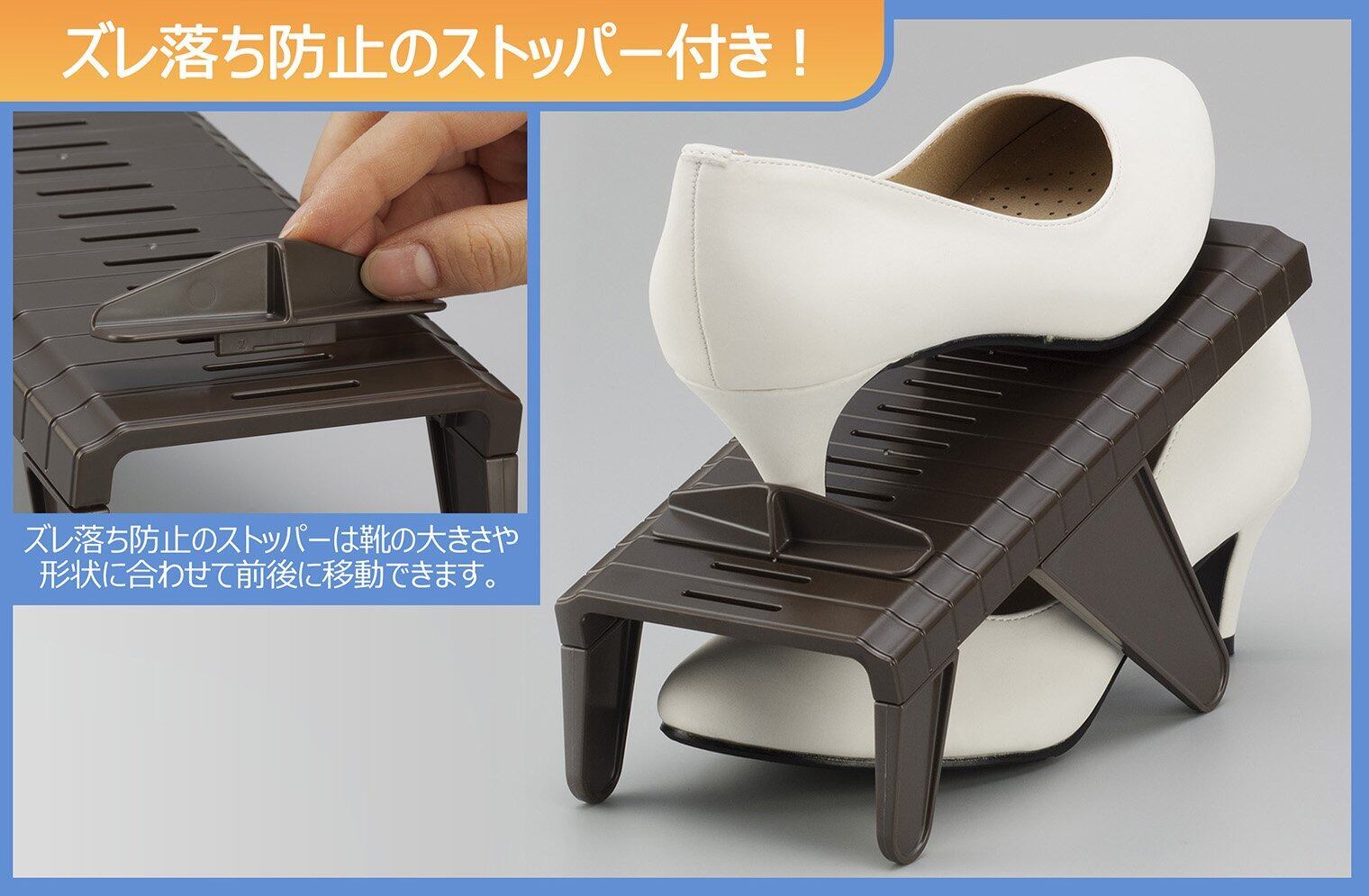 イノマタ化学 シューズホルダー スリム 高さ調整可能 ブラウン 3700