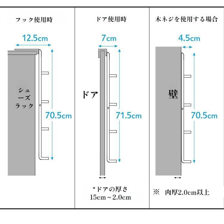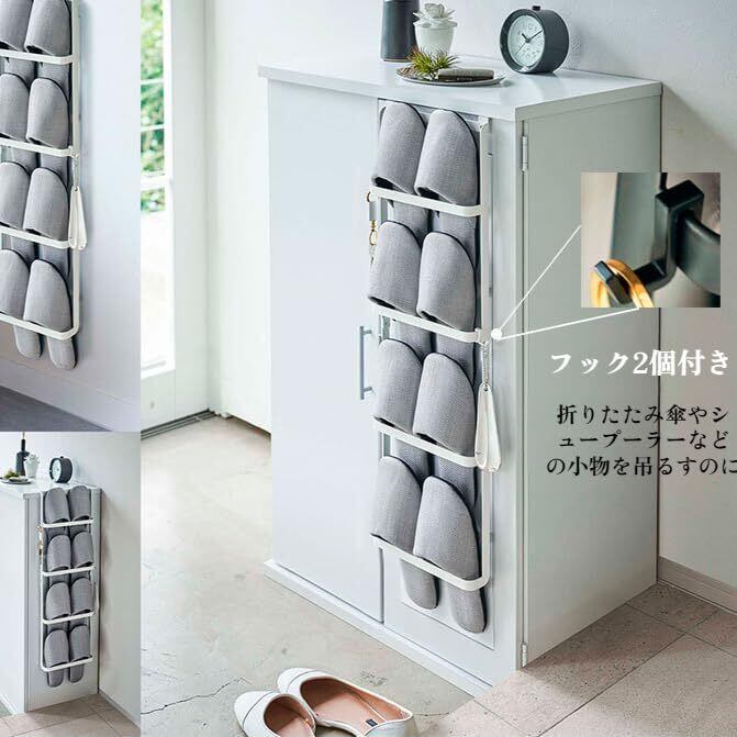スリッパラック 壁掛け【4足収納】 3way スリッパ 収納 下駄箱扉&引っ掛け式 スリム スリッパホルダー 黒 サイド吊り下げ式シューズキャビネットフック付き スリッパ立て おしゃれ シューズラック狭い玄関 室内収納 玄関収納 壁面収納 扉収納 省スペース収納