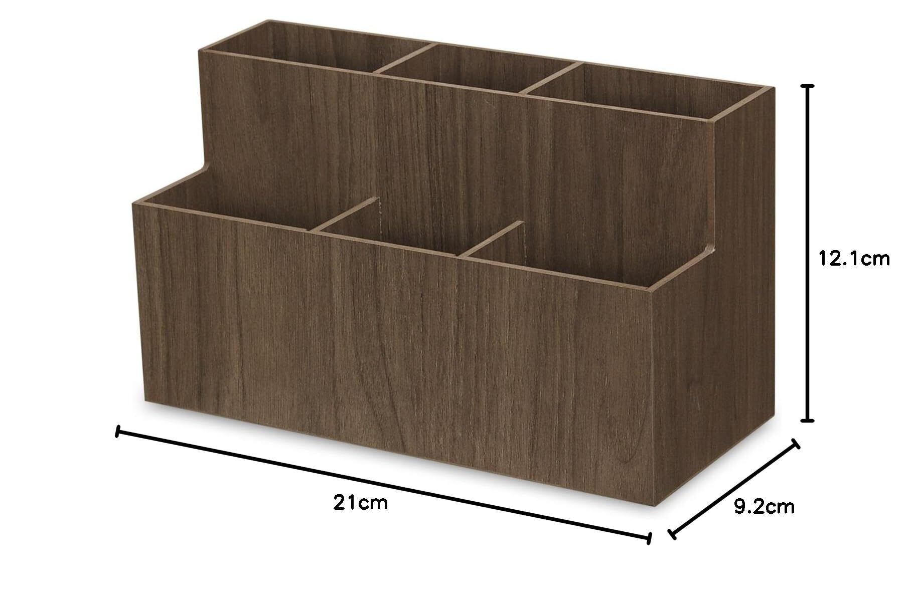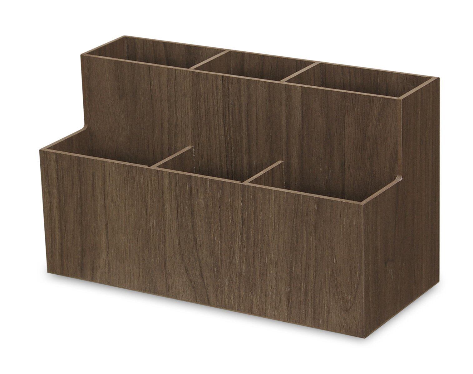 前後高さの違う6個のスペースにはリモコン以外にも眼鏡や文房具などを整理して収納することができます。高低差をつけることで、リモコンを分かりやすく収納できるのもポイントです。また、ほこりがたまりやすい内側も仕切りが外せるのでお手入れも簡単。さらに、収納のサイズにあわせて仕切りを外して使うこともできます。