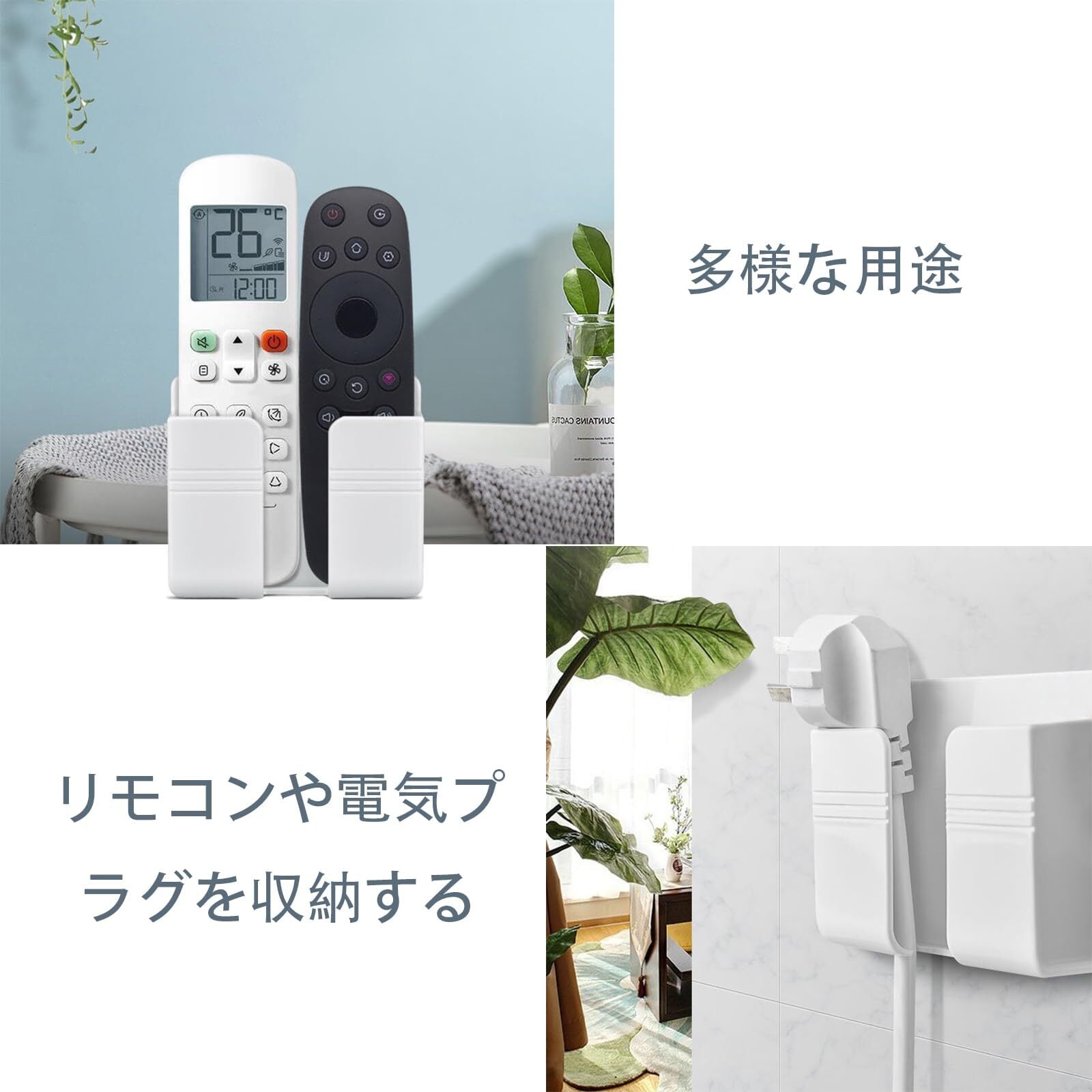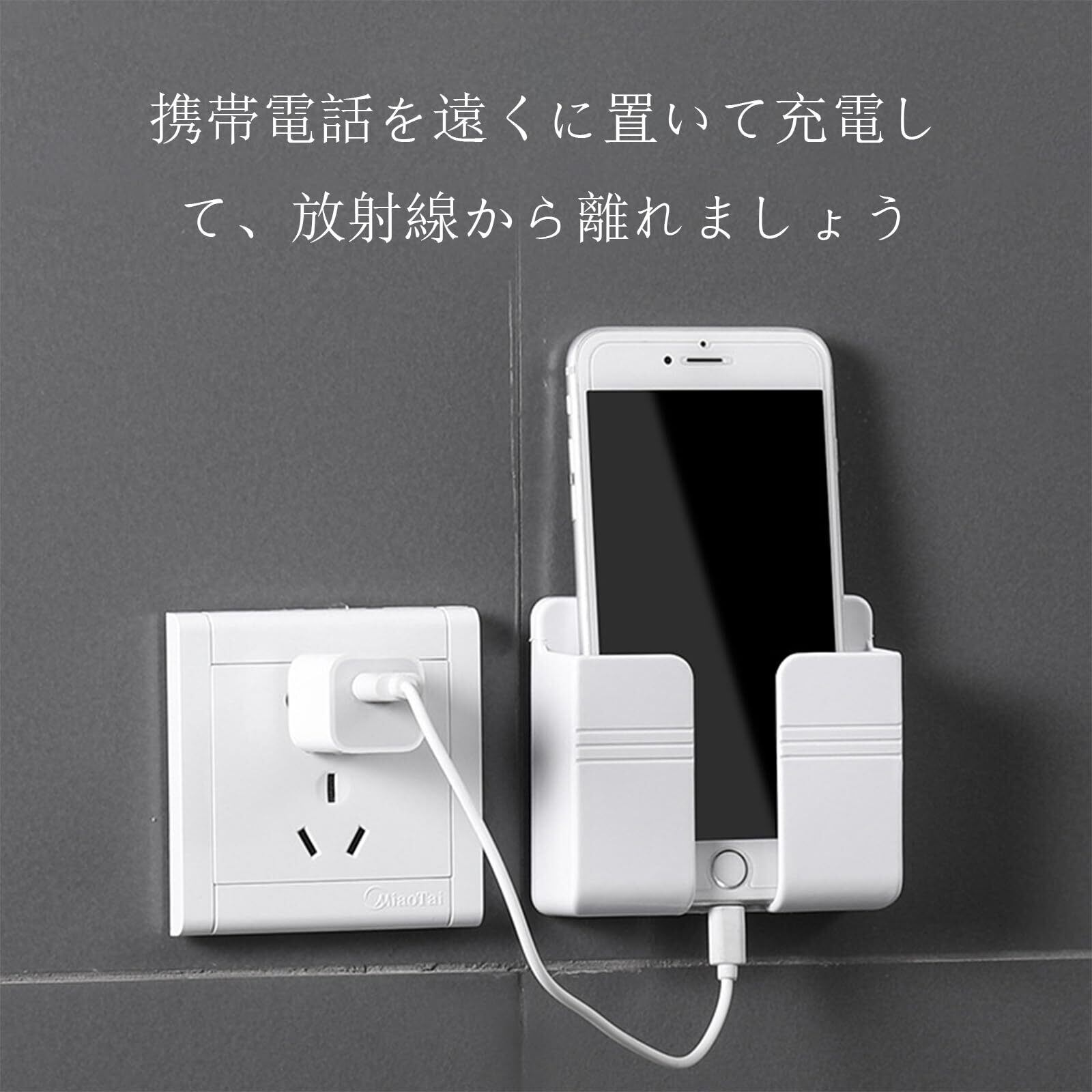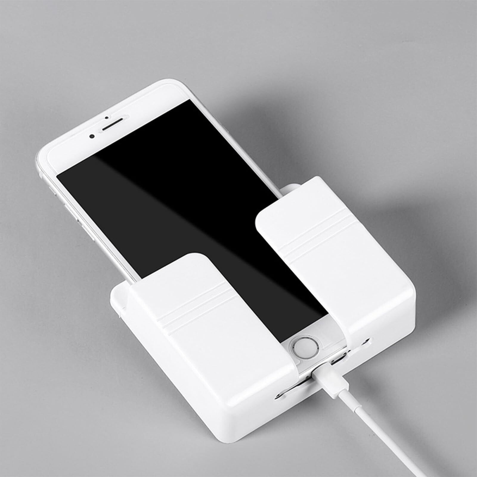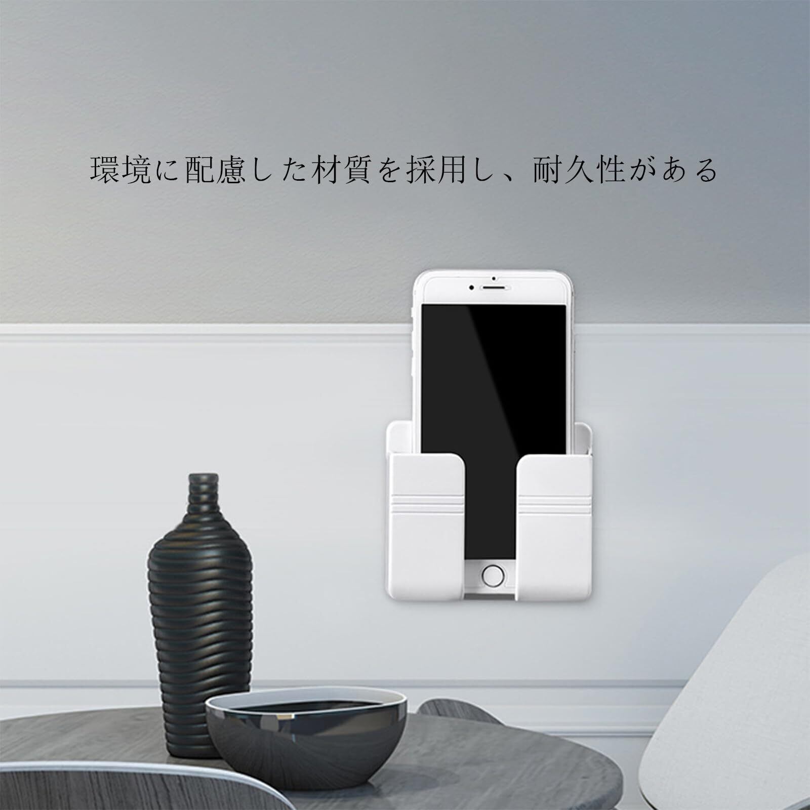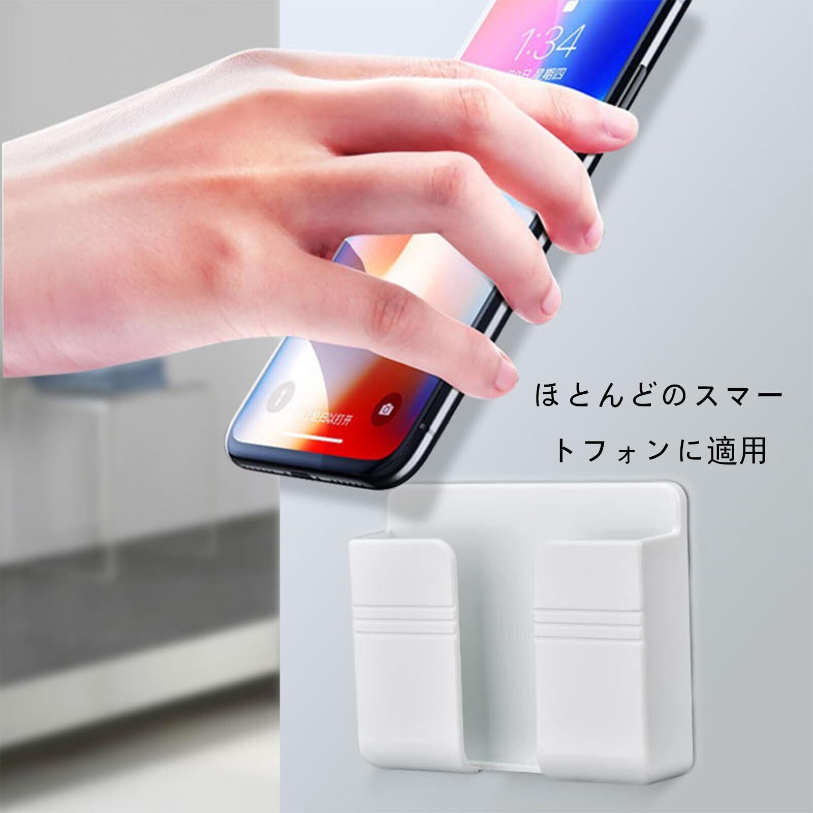 スマホスタンド 壁掛け式 リモコンスタンド スマホ充電 リモコン収納 取り付け簡単 穴あけ不要 小物収納 ホワイト ベッドルーム/キッチン/リビング用