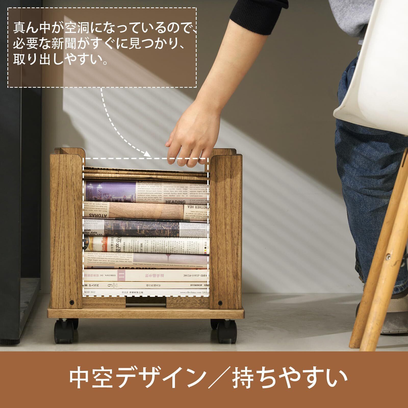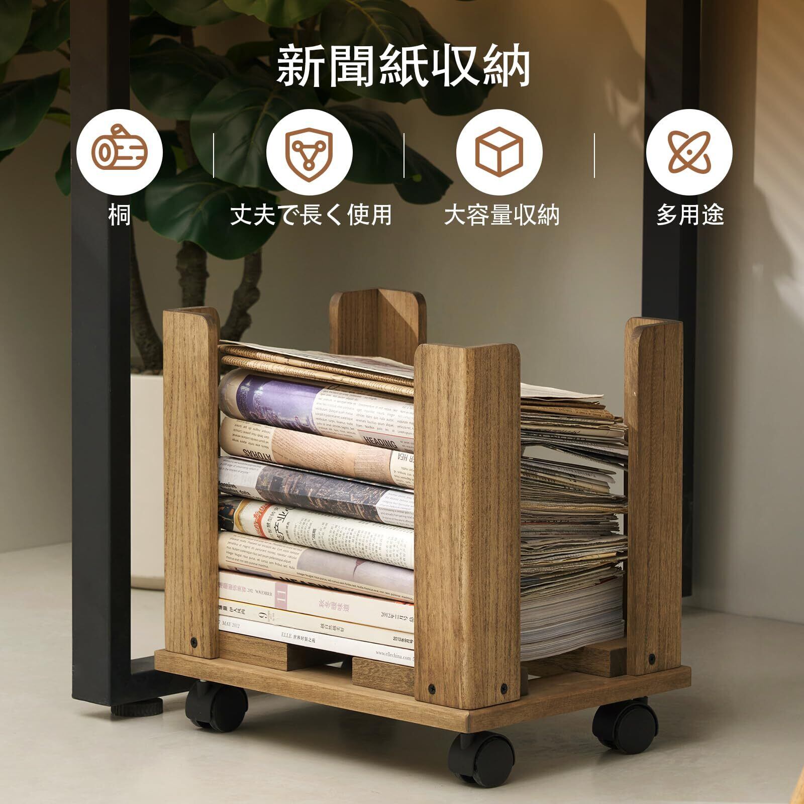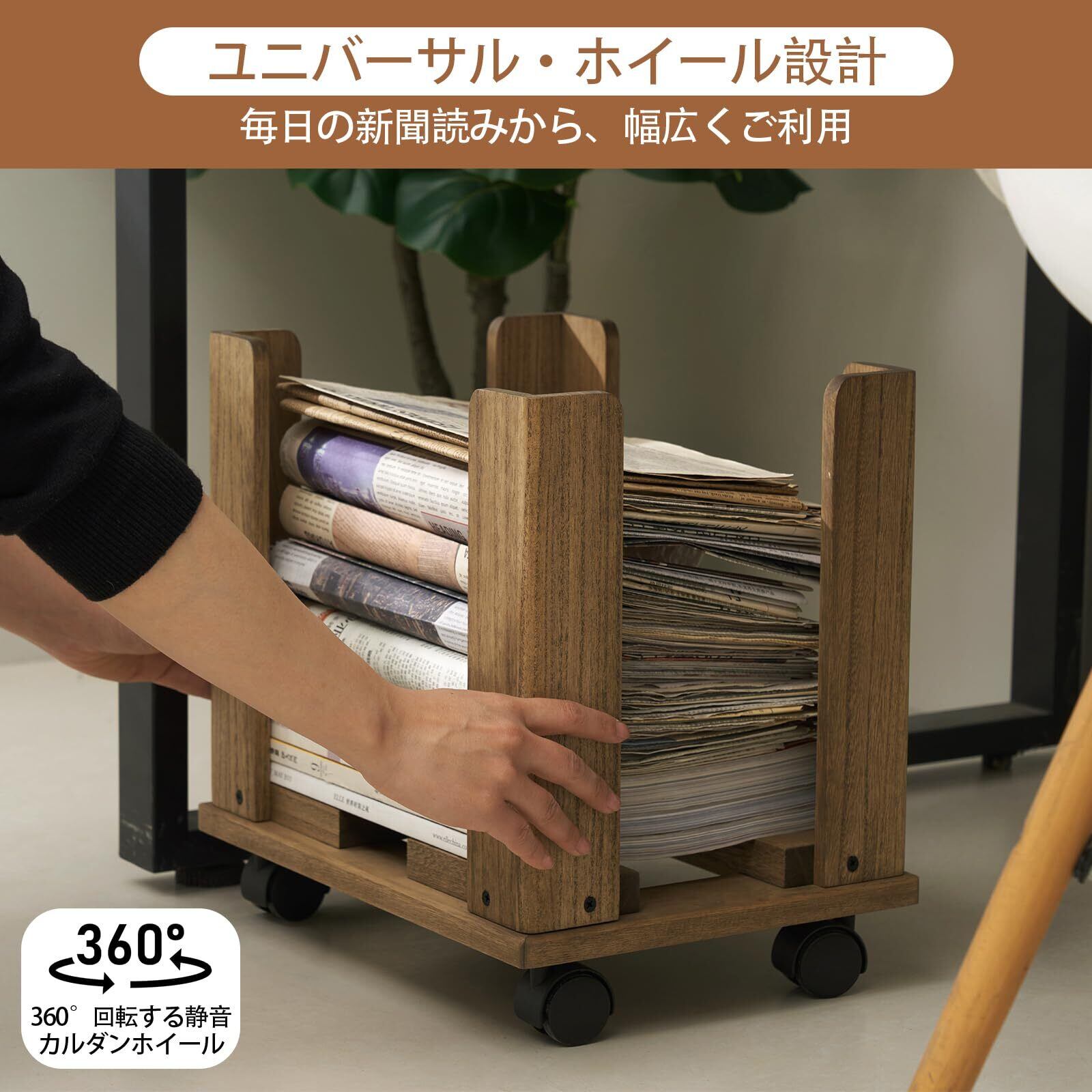 KIRIGEN 新聞ストッカー 木製 新聞 ラック 雑誌 収納 新聞 入れ 日本語取説付き キャスター付 組み立て簡単 ブラウン TQ-XWZJ-JP-DBR