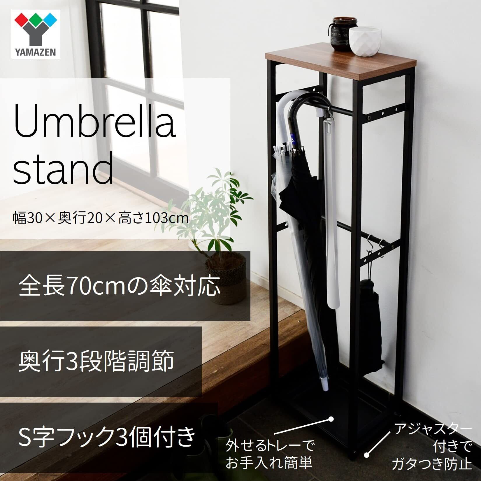 山善(YAMAZEN) 傘立て (傘かけ) 玄関 スリム 【70cm傘対応】 幅30×奥行20×高さ103cm S字フック3個 2段 バーの奥行が変えられる(3段階) 組立品 ダークブラウン/マットブラック RUS-30(DBR3/MBK)